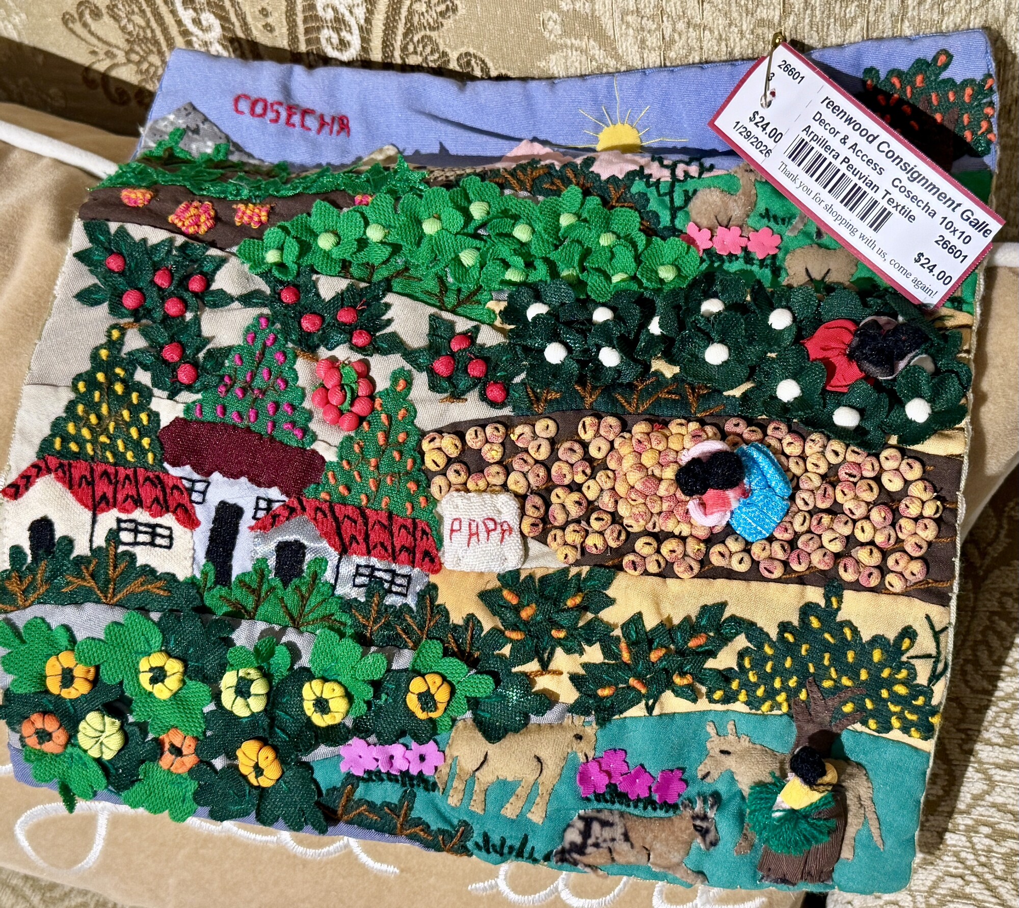 Arpillera Peuvian Textile, Cosecha, Size: 10x10
