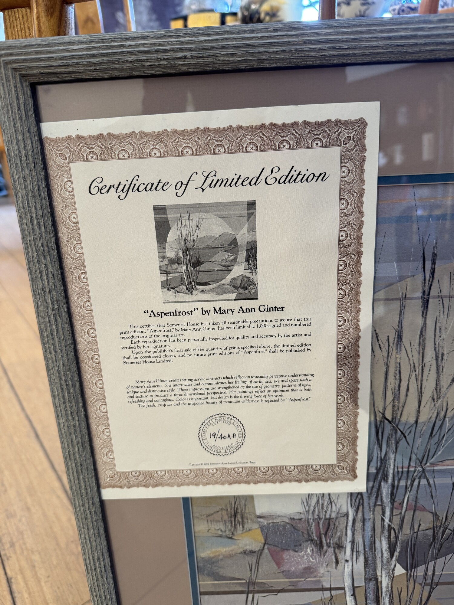 Artist Proof Mary Ann Ginter - Certificat of Limited Edition