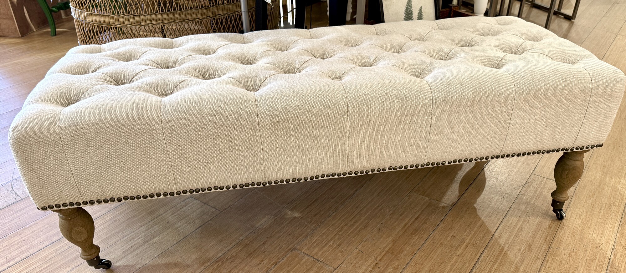Bench Restoration Hardware Tufted, White, Size: 54x20x18