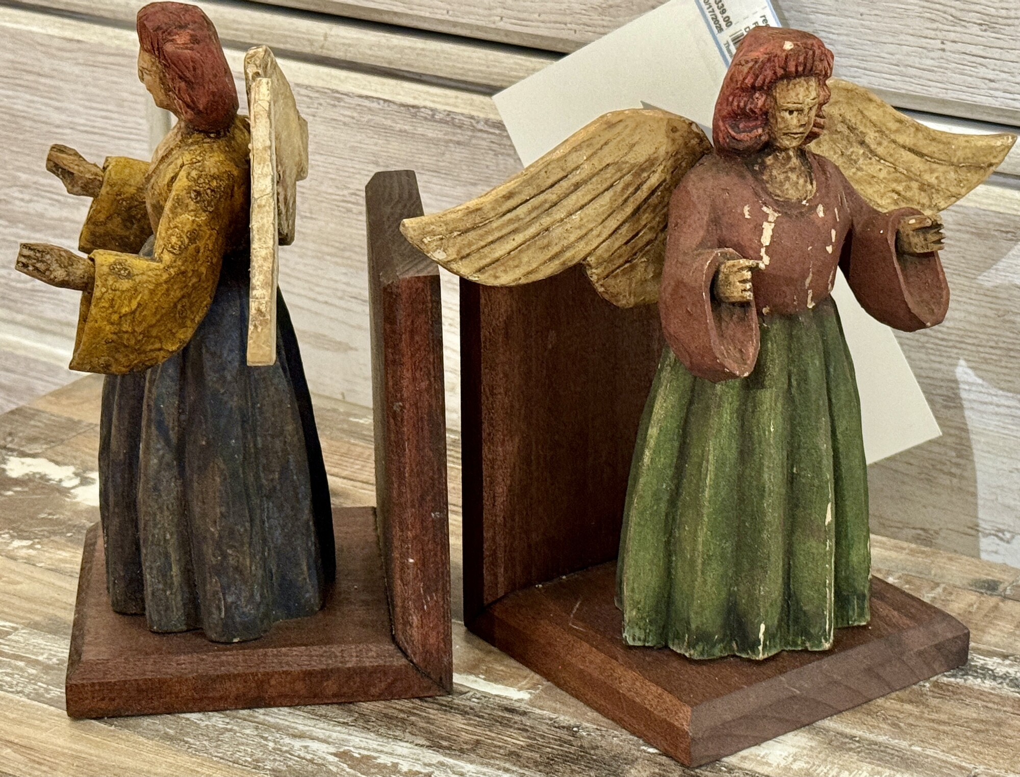 Bookends Angel Hand-Carved, Wood, Size: 9H