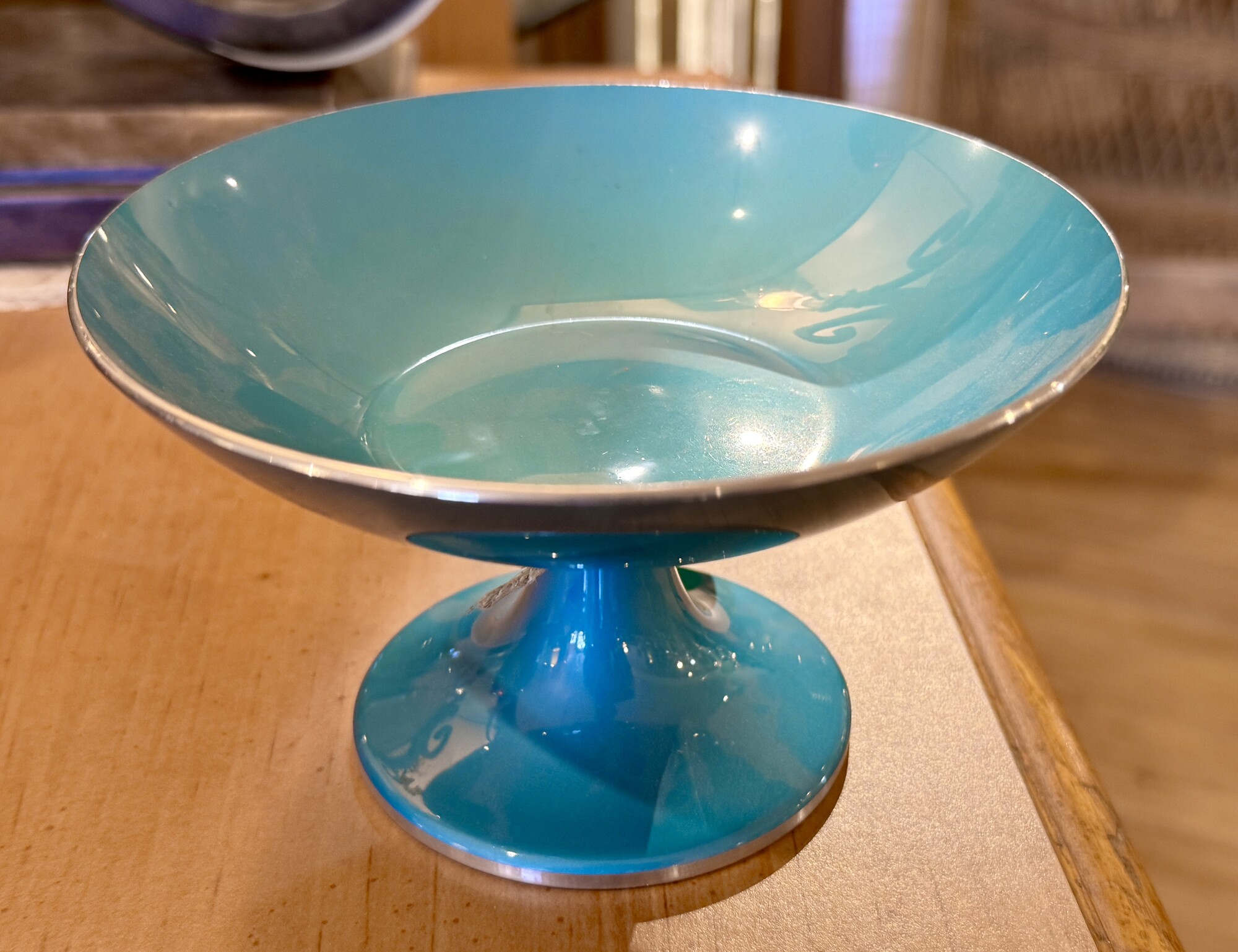 EMALOX anodized aluminum enamel Turquoise PEDESTAL BOWL/CANDY DISH Norway MCM, Size: 6Rx3H
