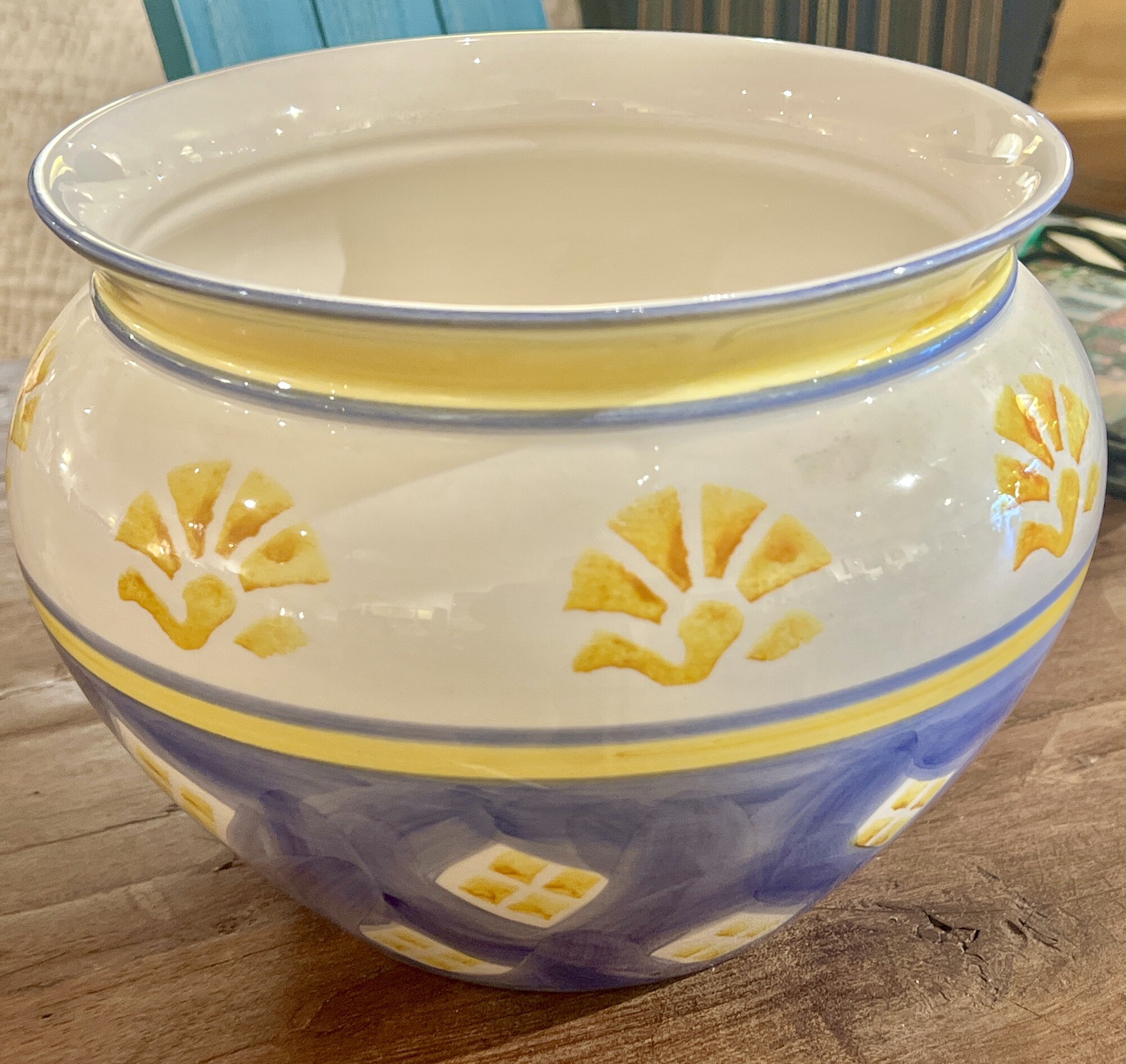 Bowl Pottery Portugal, Blu/Yllw, Size: 9x6