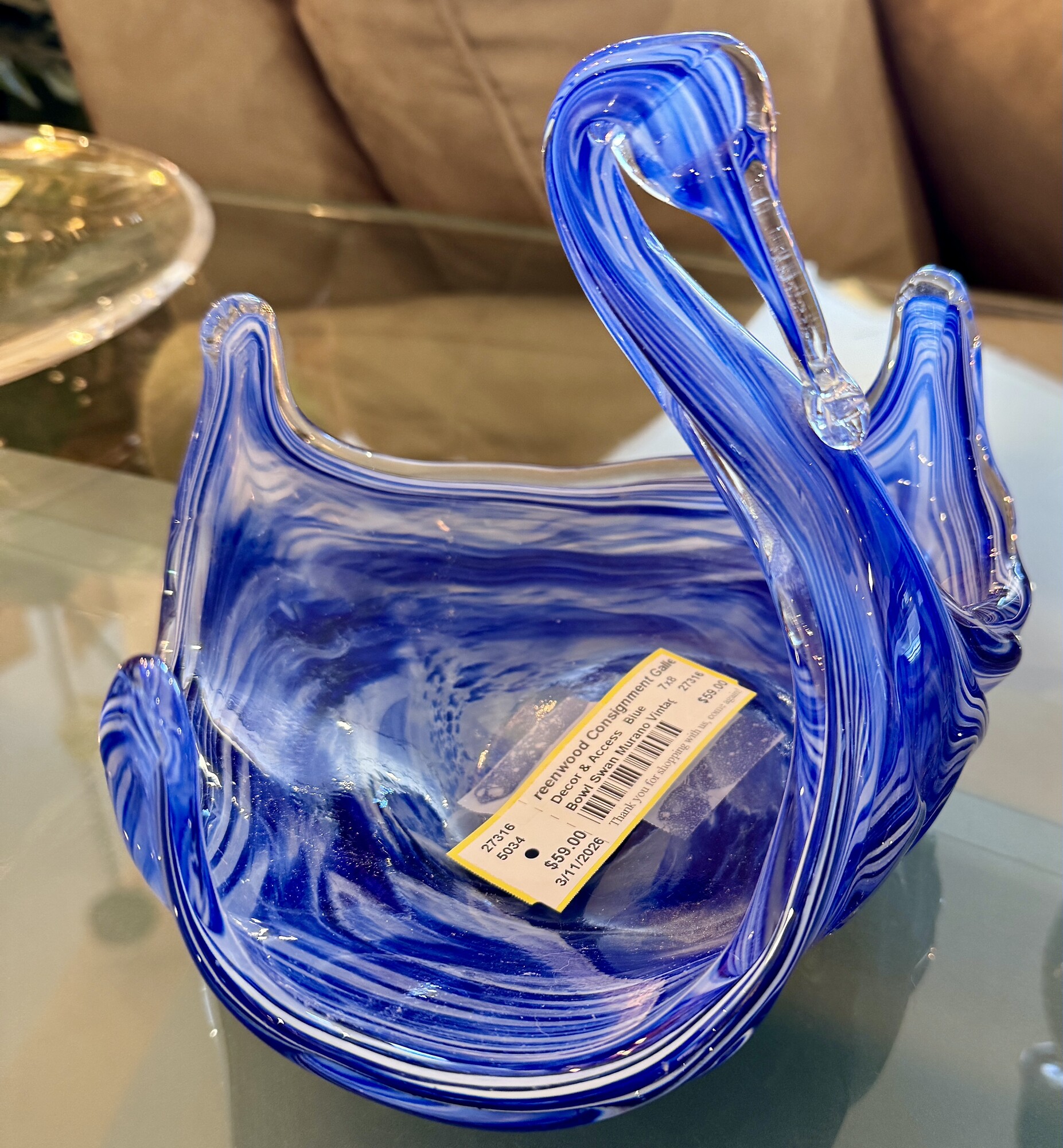 Bowl Swan Murano Vintage, Blue, Size: 7x8