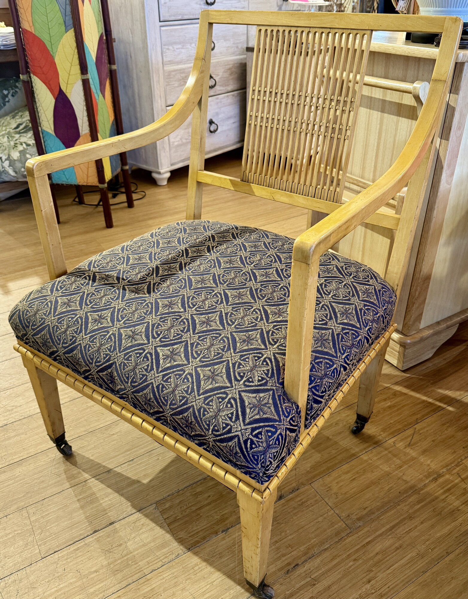 Chair Accent Wood Frame, Blue Patterned Upholstery, Size: 26x23x26