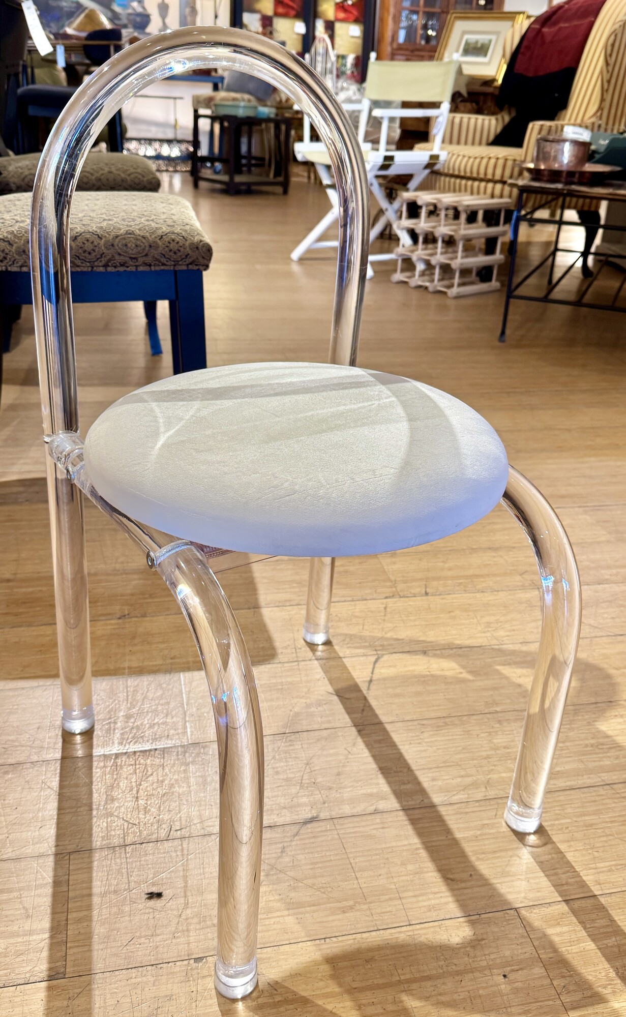 Vanity Chair, Acrylic Base, White Seat, Size: 16x16x29