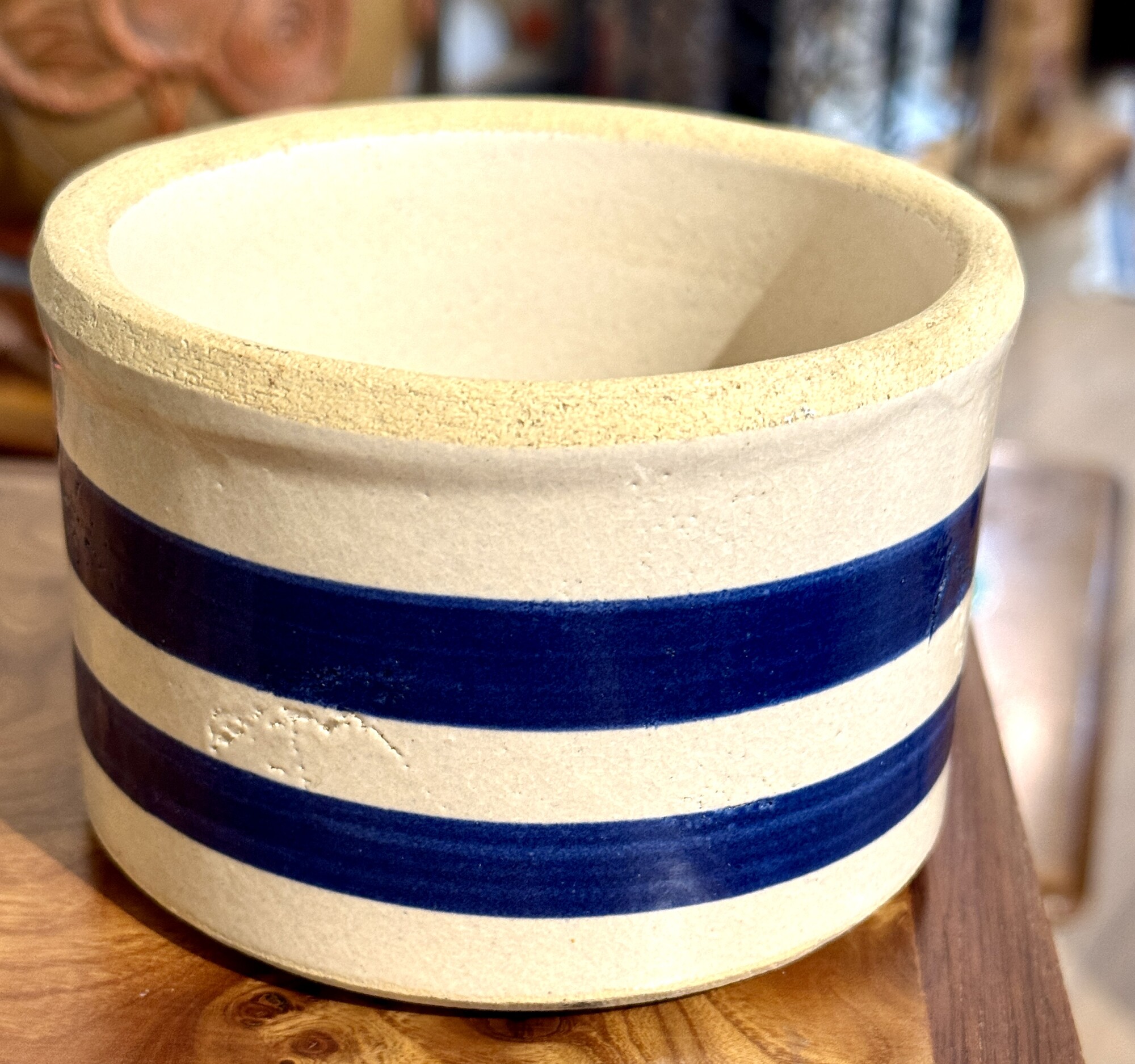 Crock Roseville, Blue Stripe, Size: 5x3