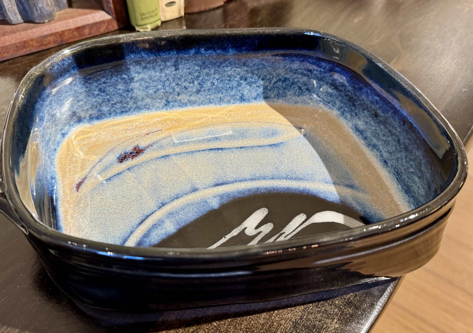 Dish Ceramic Signed, Blue Beige, Size: 9x8