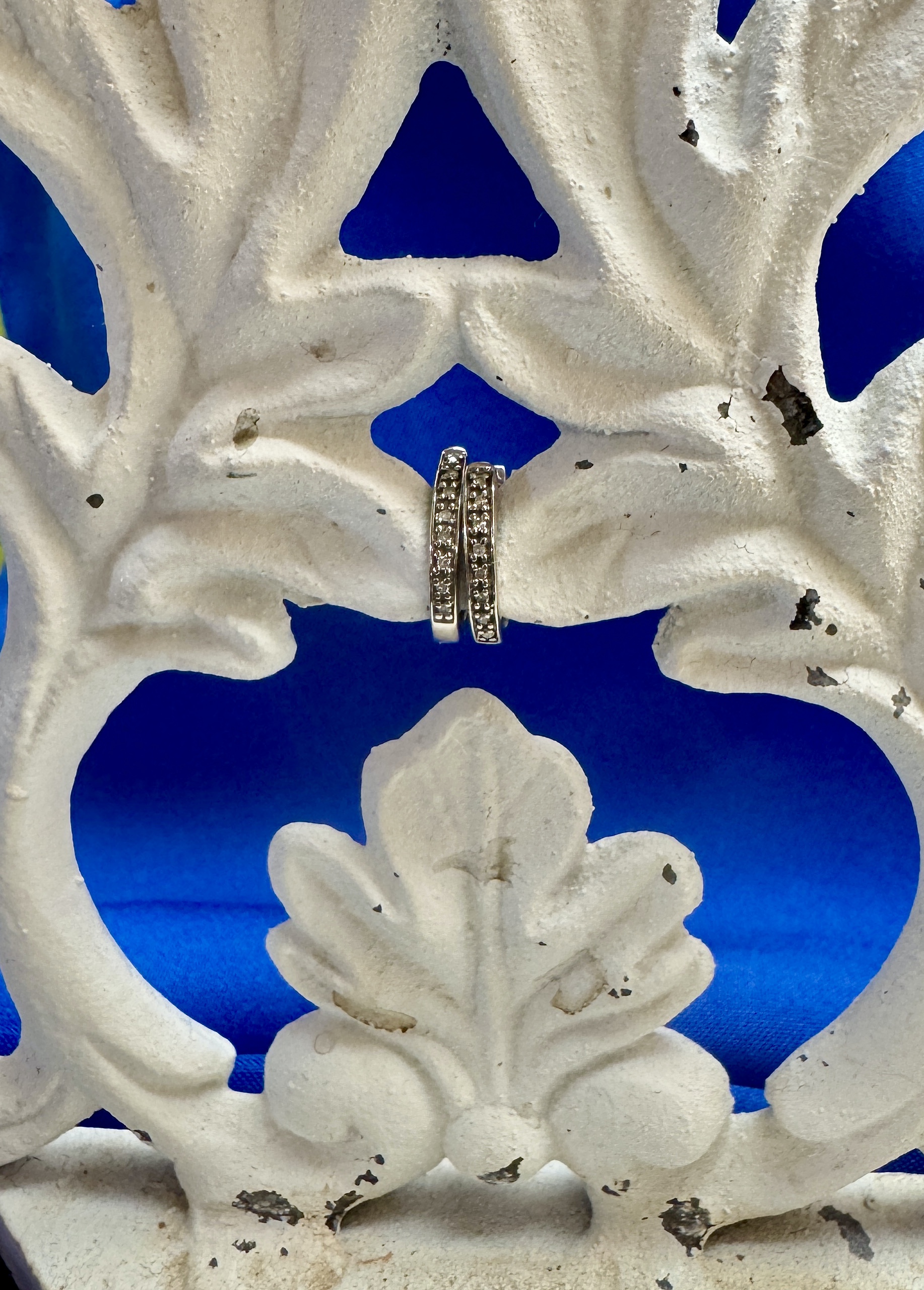 14k white gold hoops with diamond