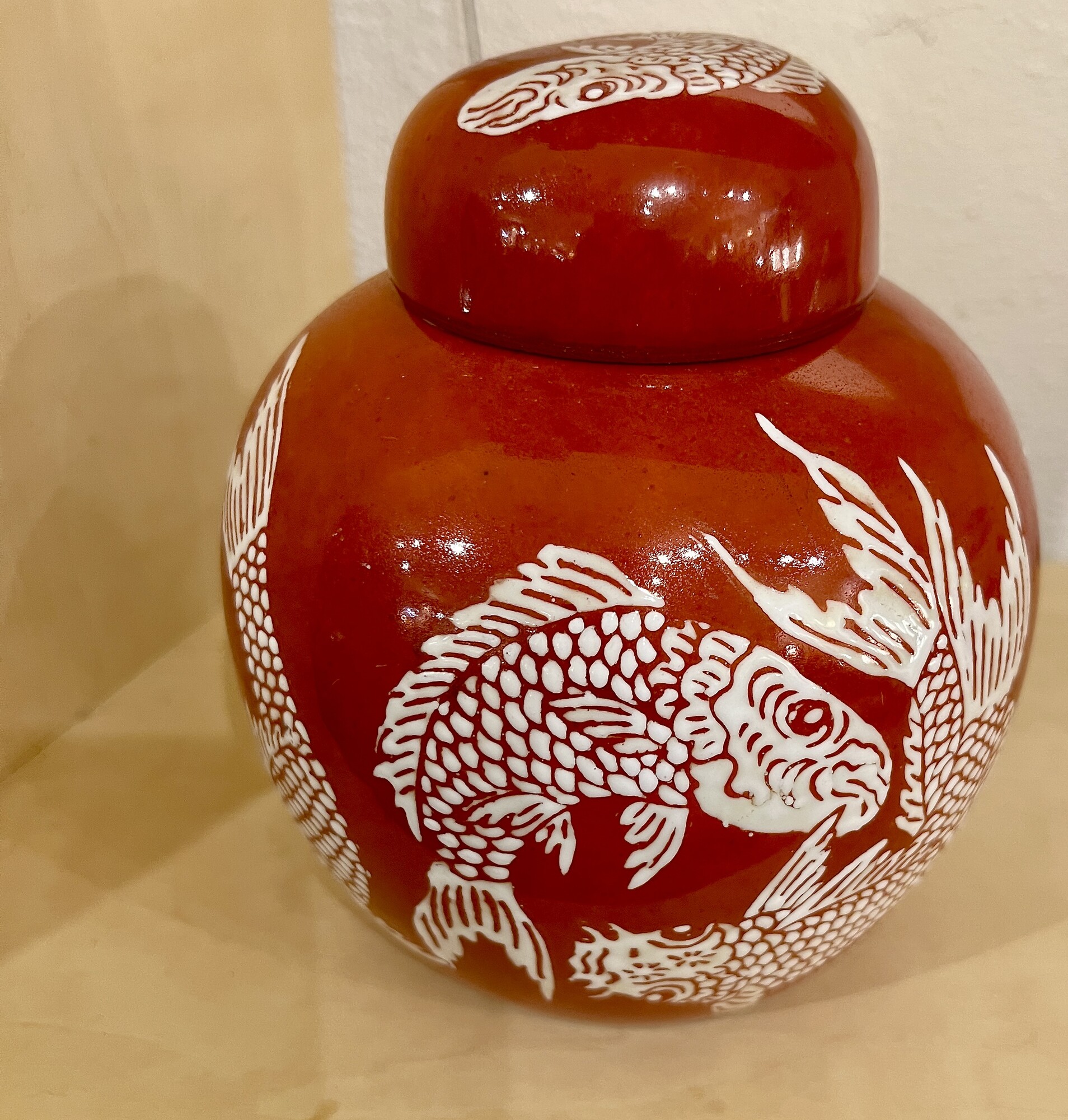 Ginger Jar Koi Fish, RustWht, Size: 2 Pieces
