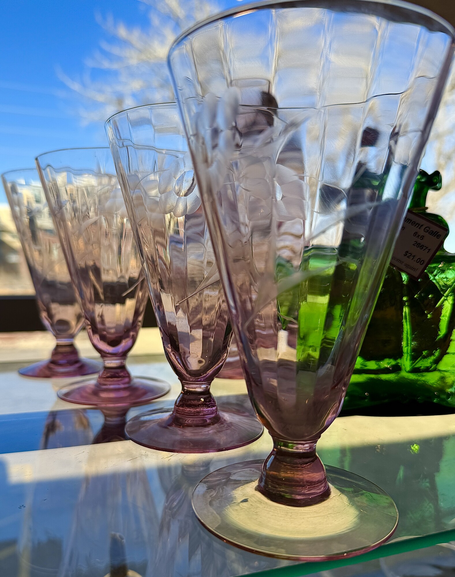 GlassesPink Depression glass with etchings