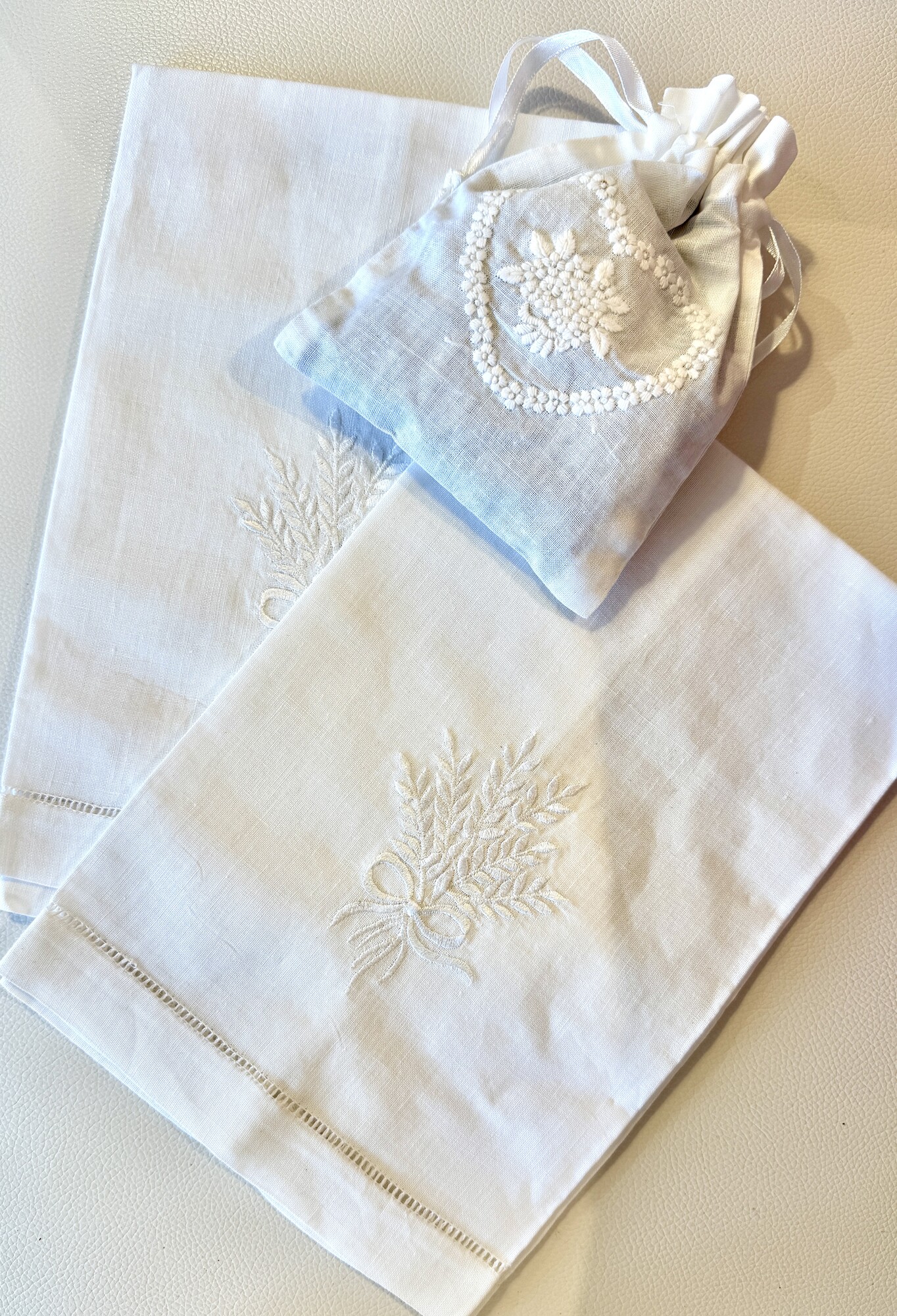 Embroidered Hand Towels with Lavender Sachet, White, Size: 3 Pcs