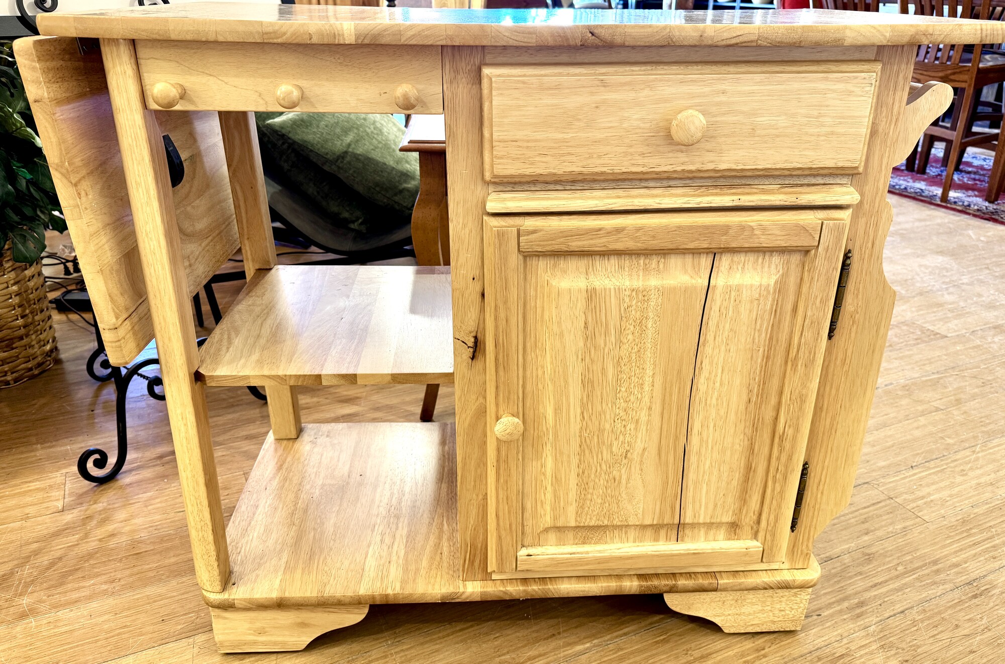 Kitchen Island On Wheels, Size includes 14 Inch Drop Leaf, Size: 38x20x33 AS IS