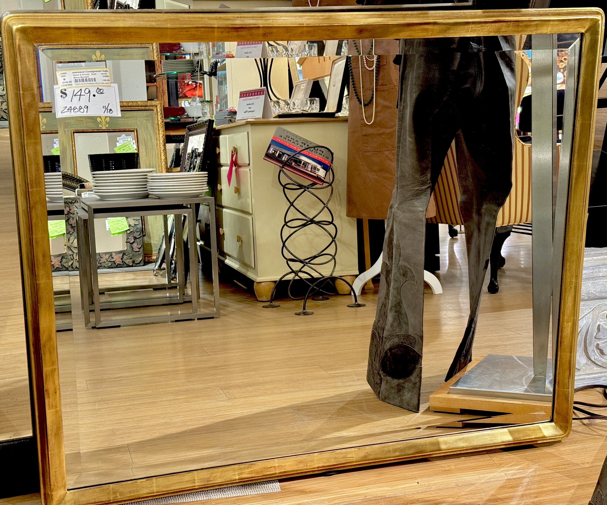 Mirror Beveled, Gold, Size: 43x36