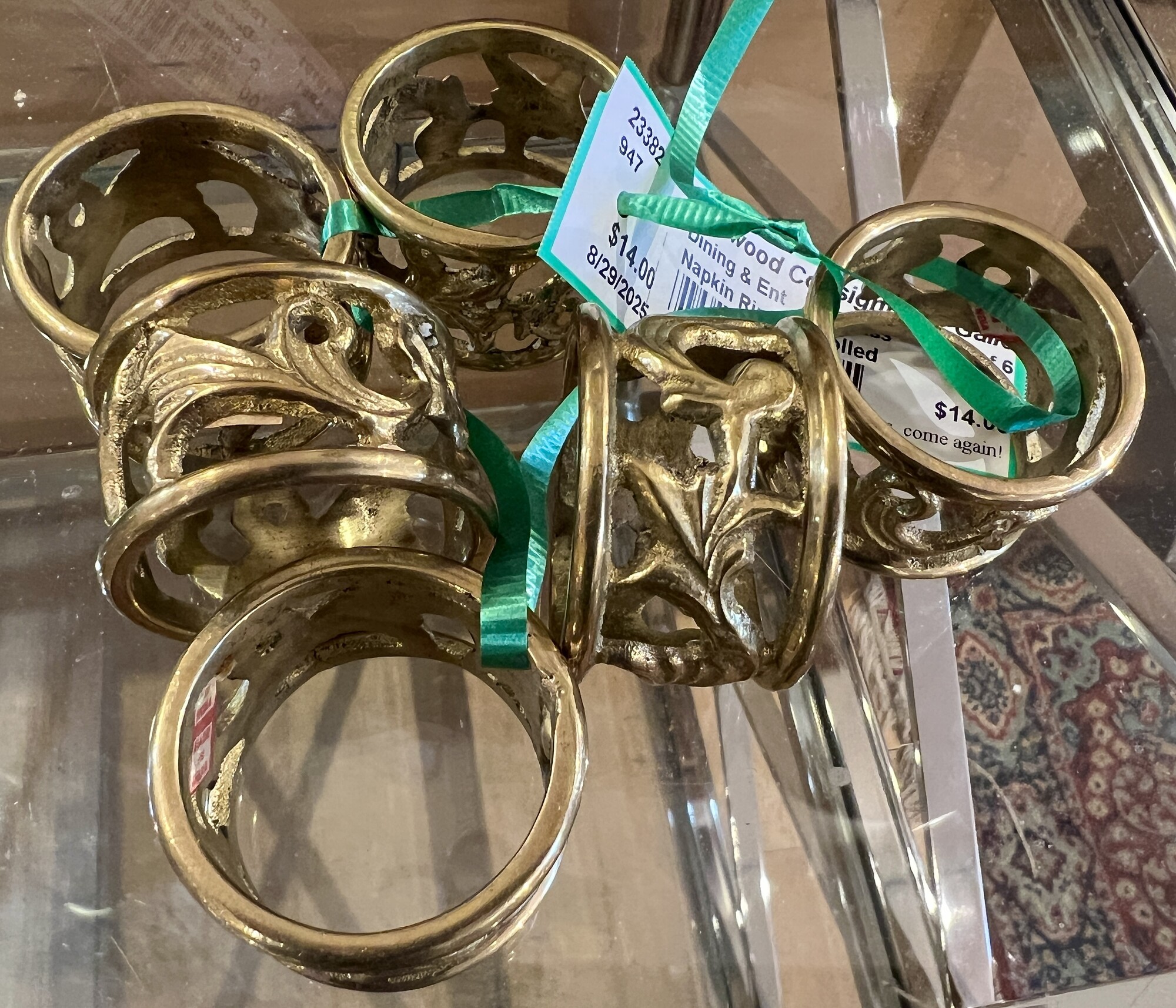 Napkin Rings Scrolled, Brass, Size: Set Of 6