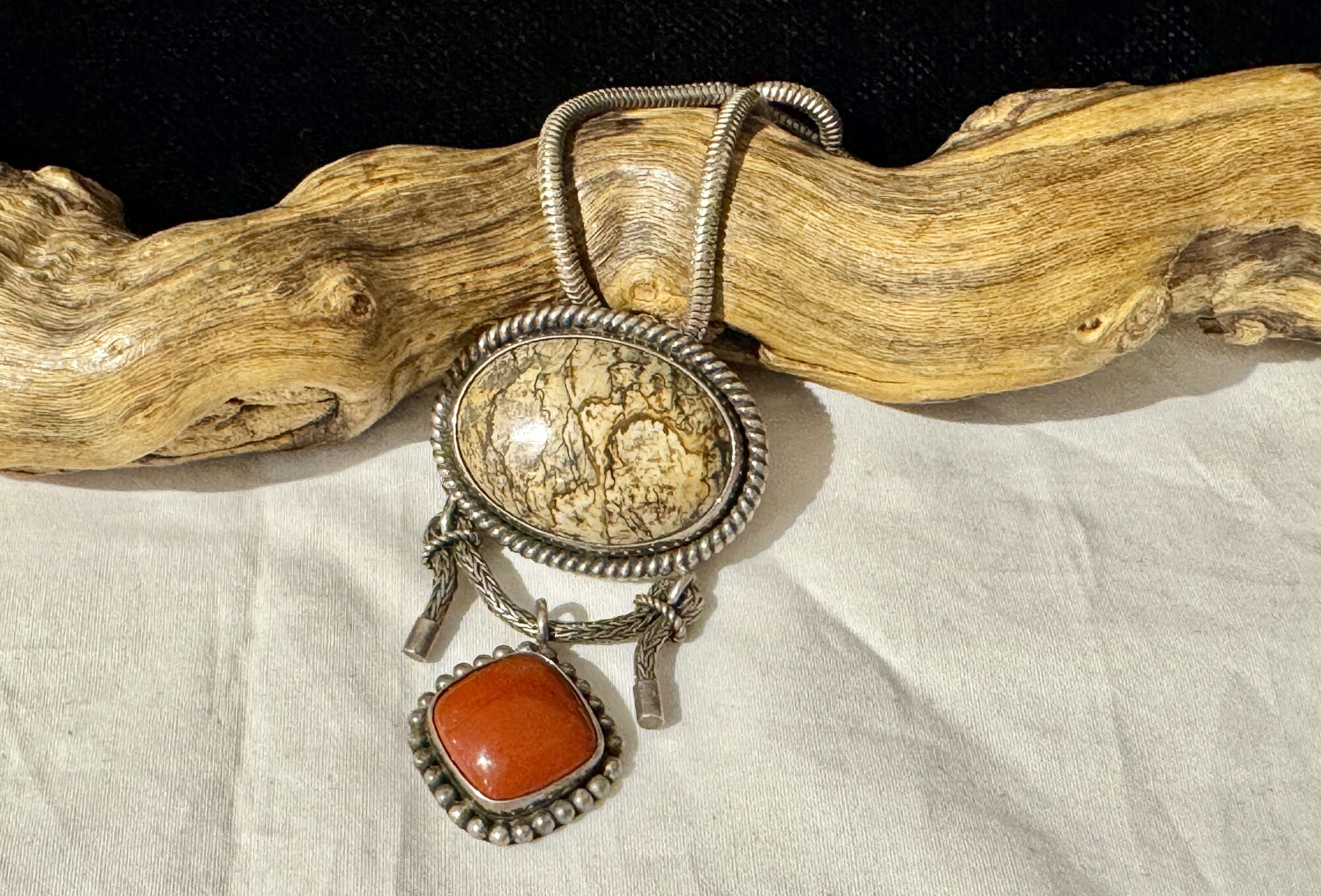 Sterling oval agate & red stone pendant necklace