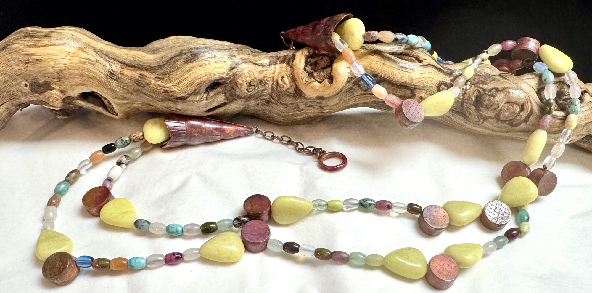 Double strand copper & yellow beaded necklace
