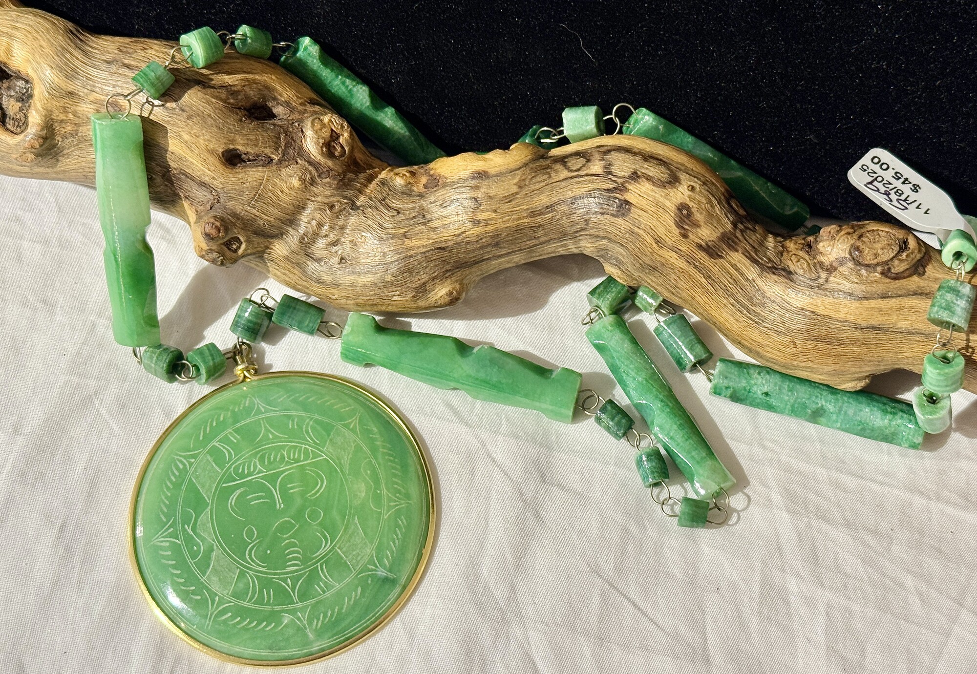 Mexican jade disk pendant necklace