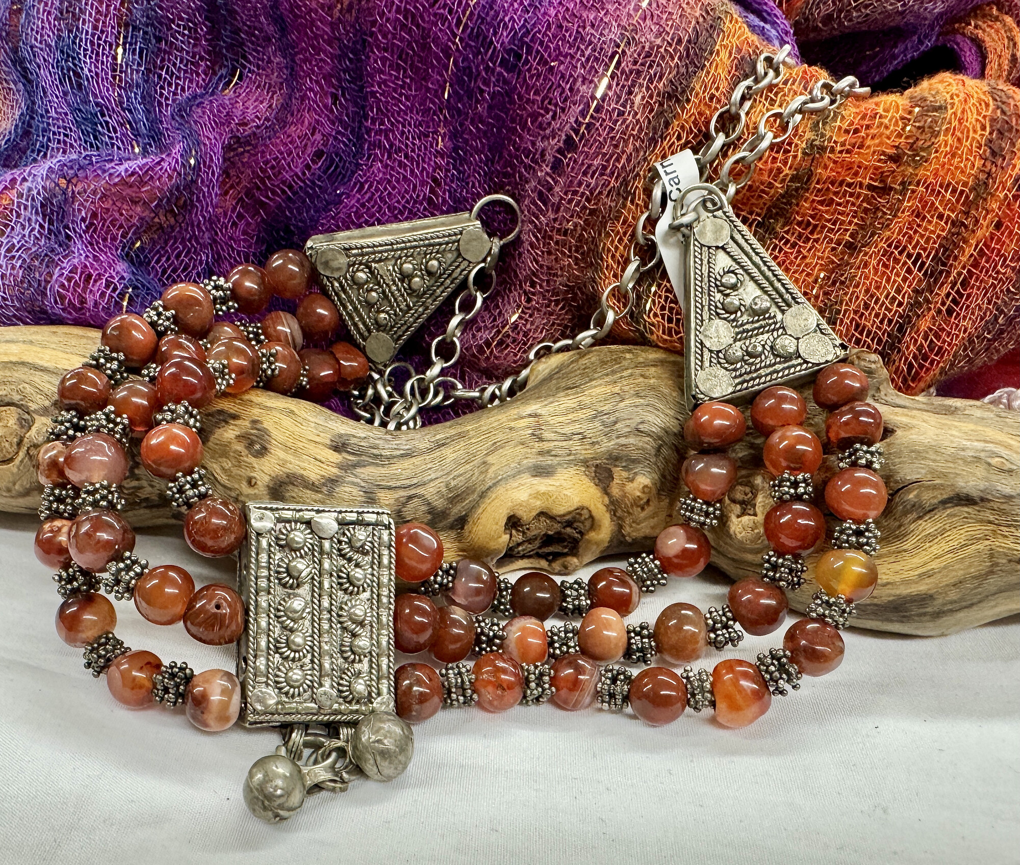 3-strand Ethnic Carnelian Necklace
