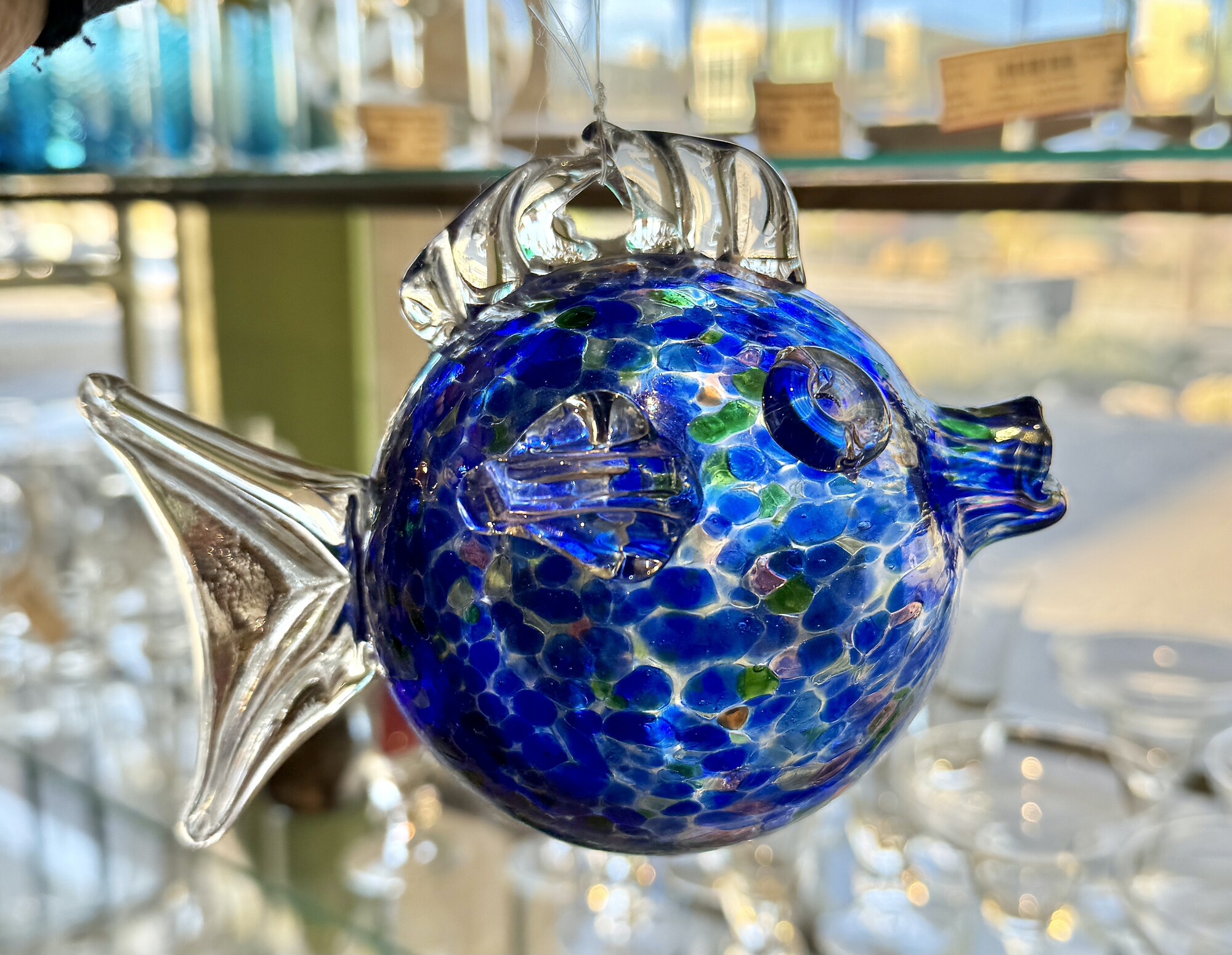 Ornament Glass Blowfish, Blue, Size: 6x5