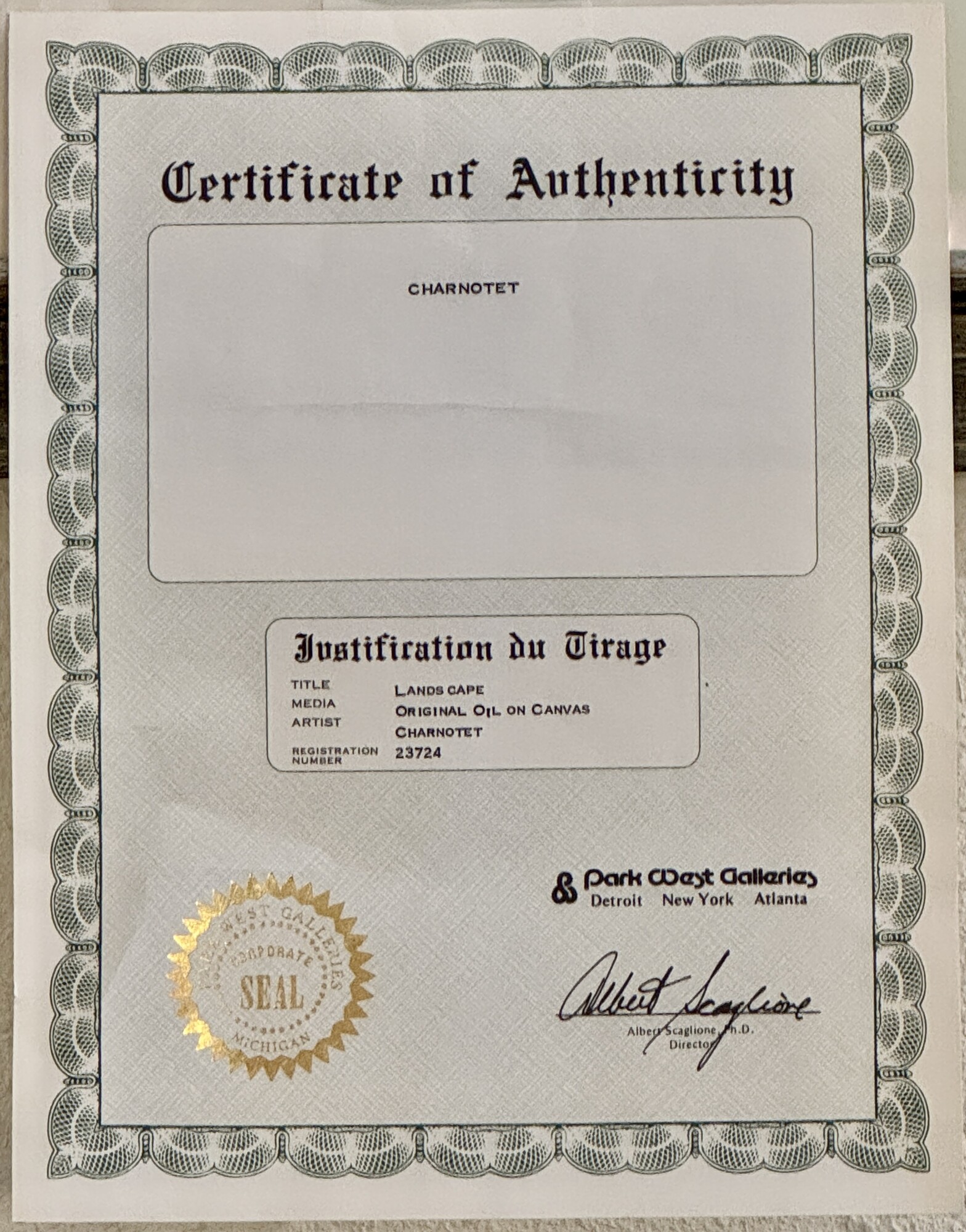 Painting Artists Proof by Charnotet, Size: 32x28