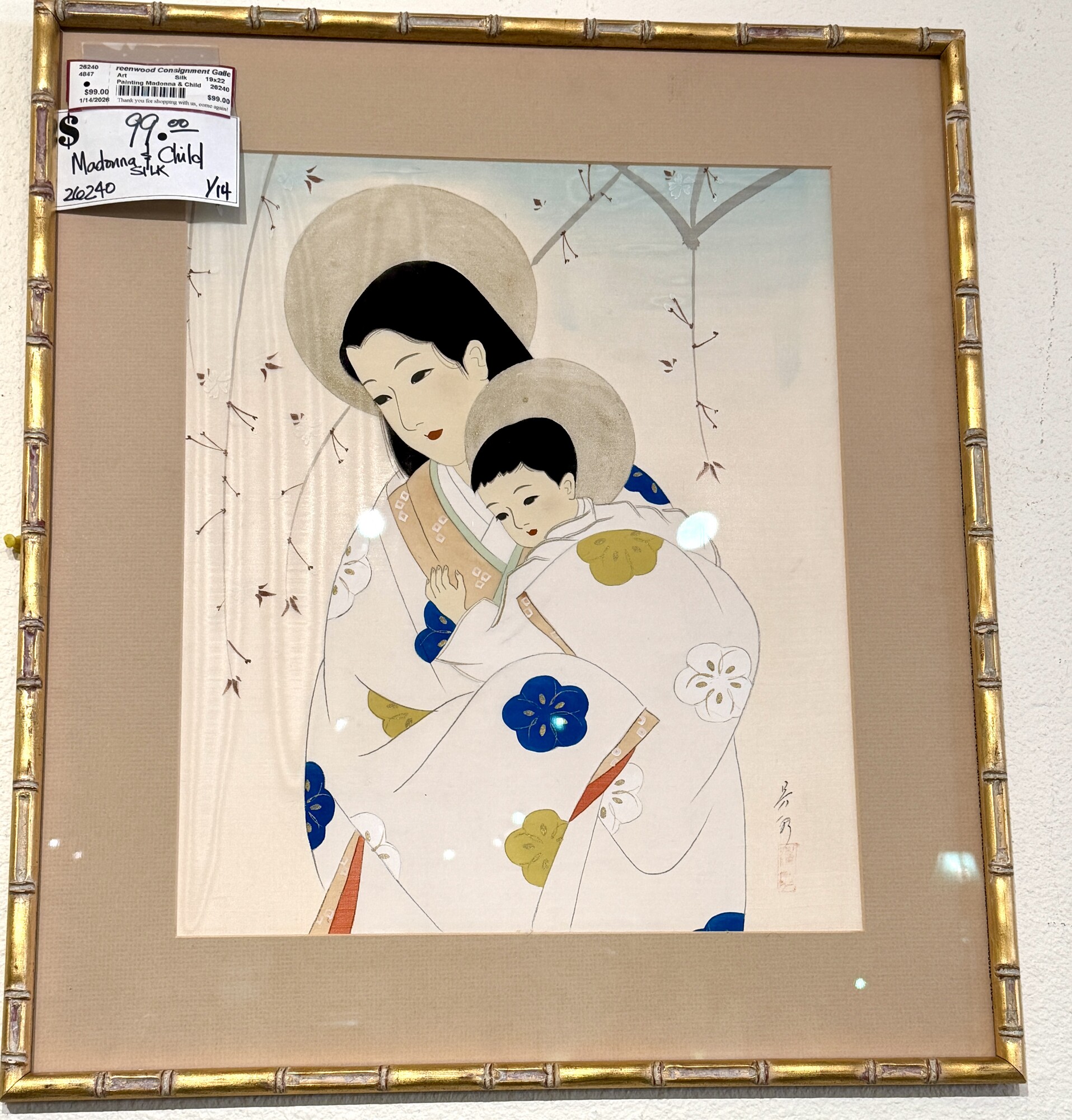 Painting Madonna & Child, Silk, Size: 19x22