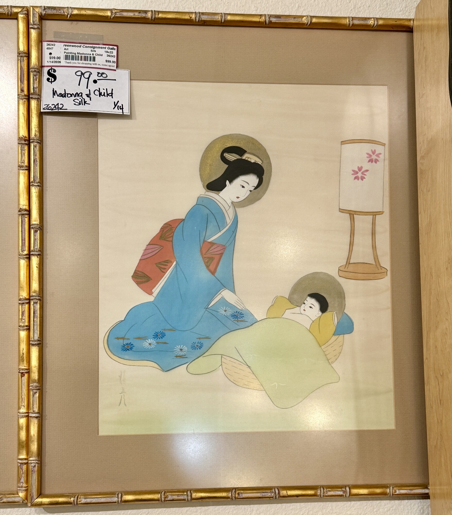 Painting Madonna & Child, Silk, Size: 19x22