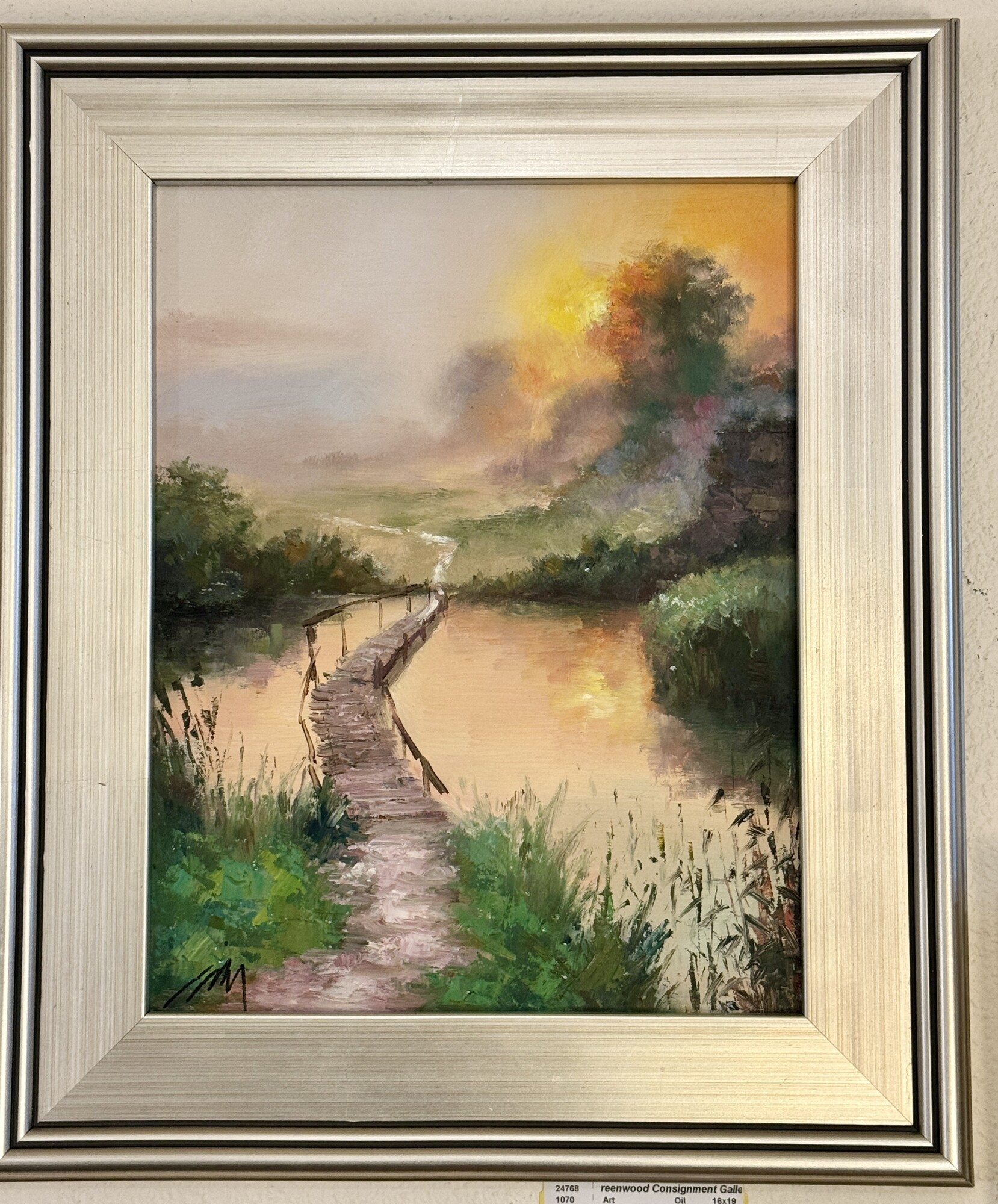 Oil Painting Walking Bridge unknown artist Size: 16x19
