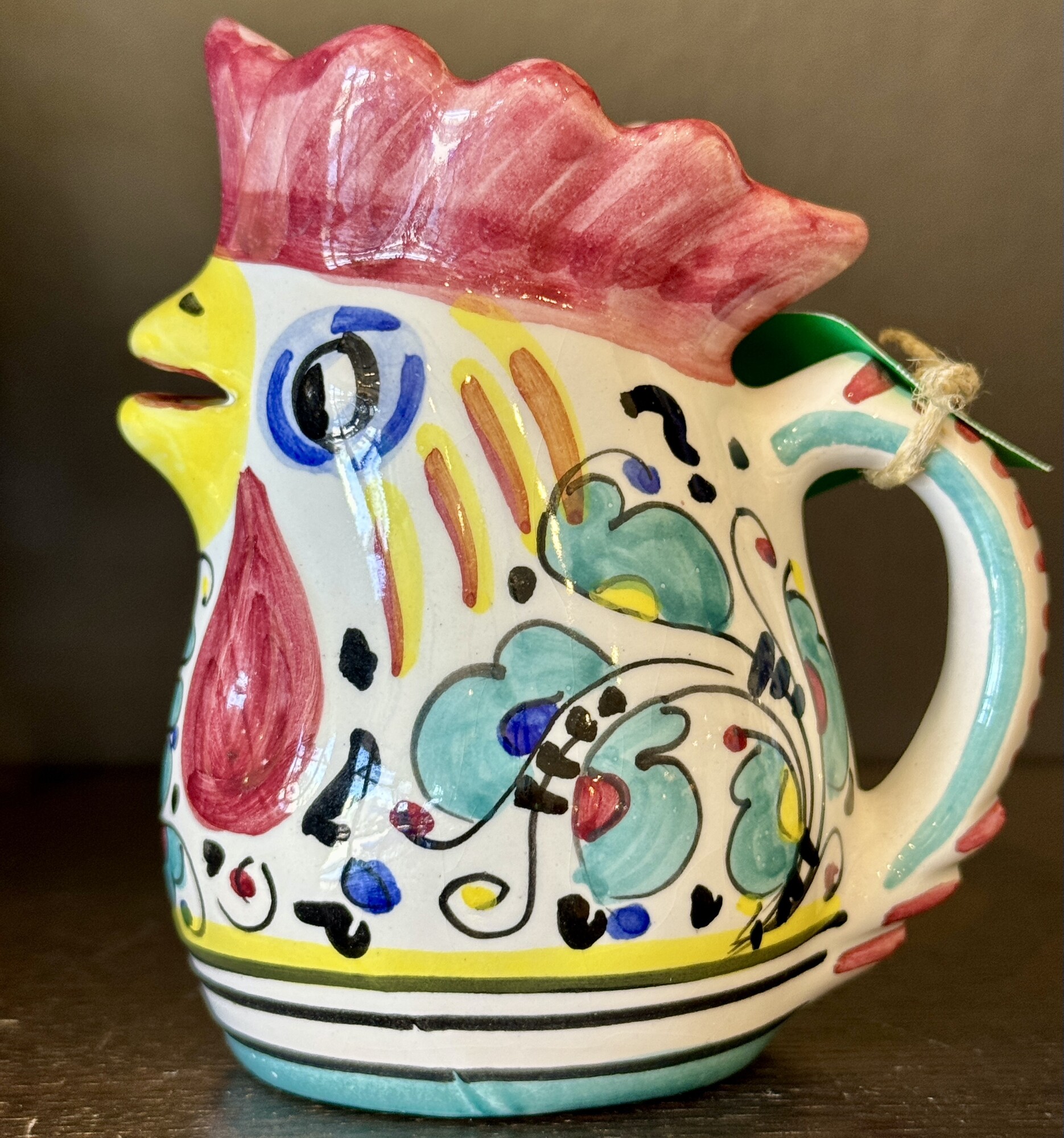 Pitcher Rooster Italy, Painted, Size: 4H