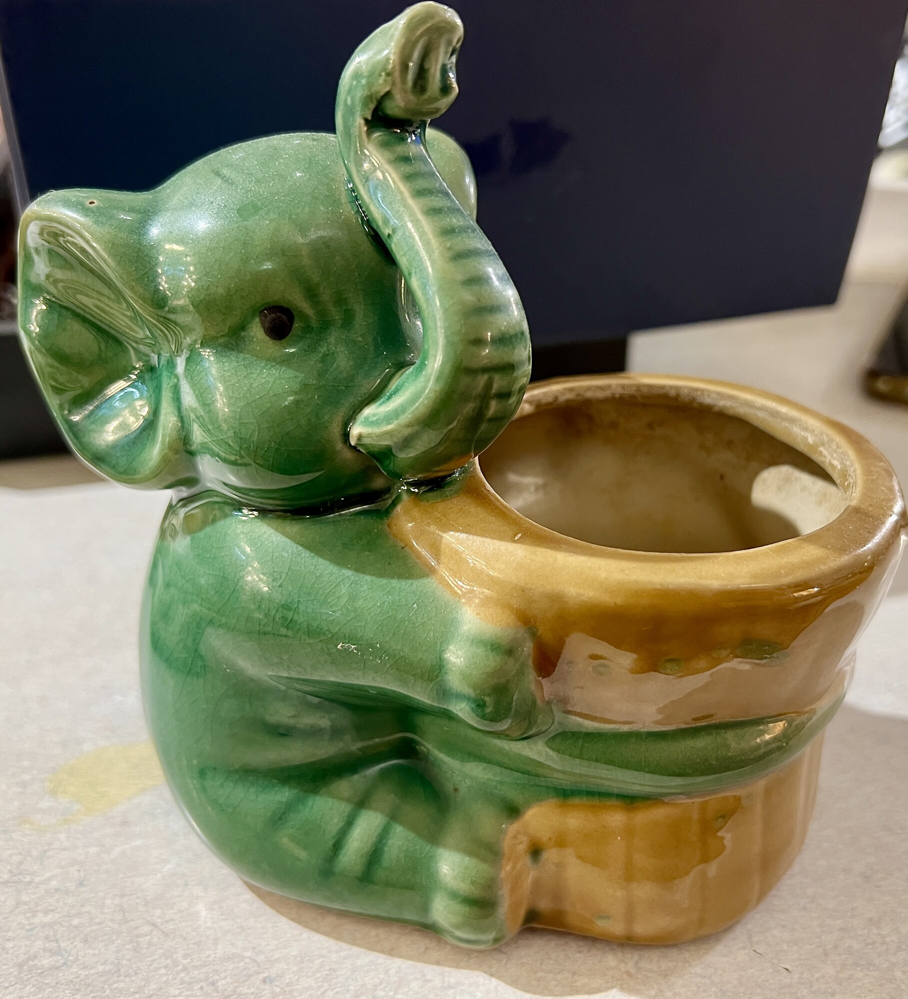 Planter Elephant Vintage, Green, Size: 3x5x5