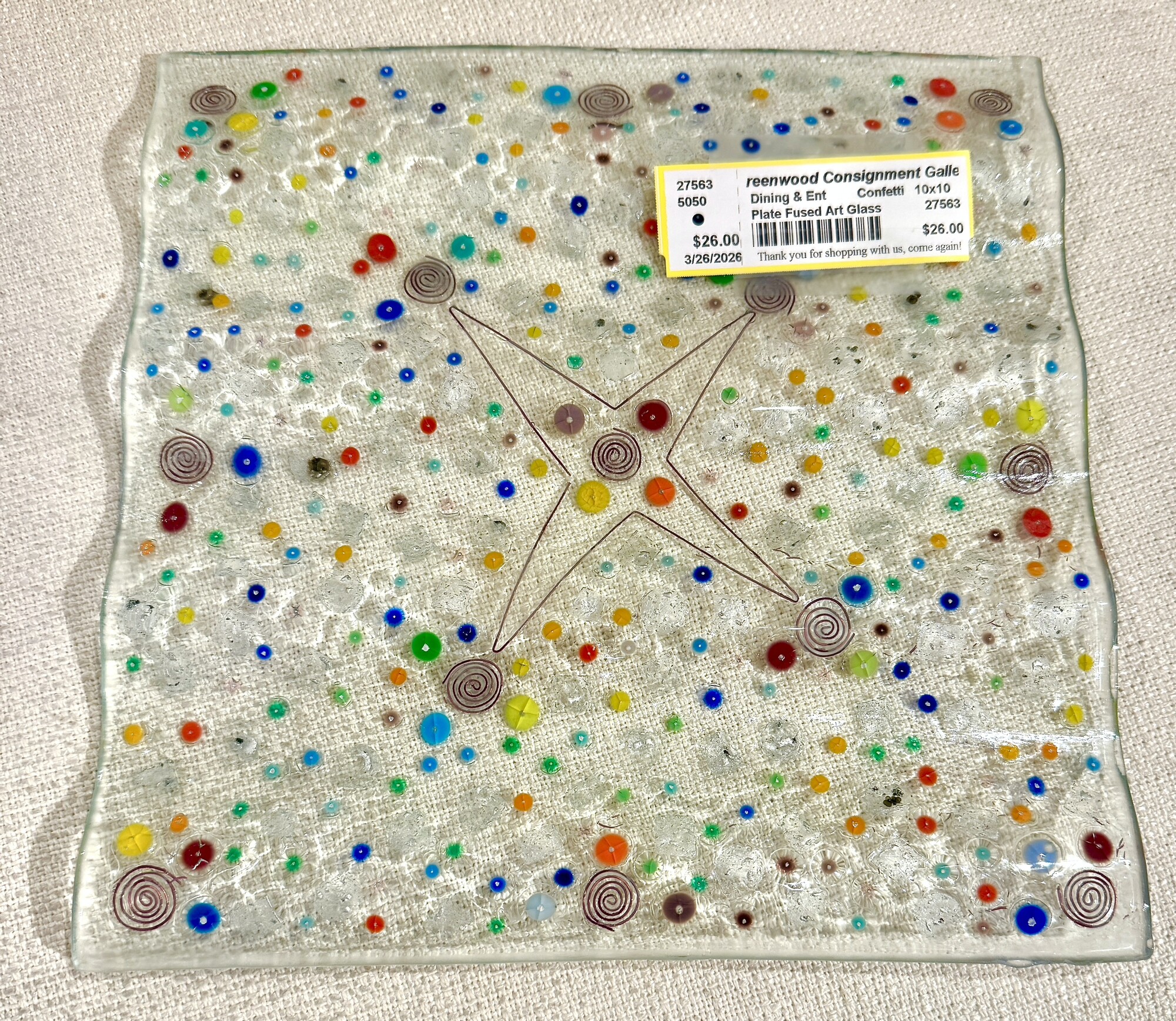 Plate Fused Art Glass, Confetti, Size: 10x10
