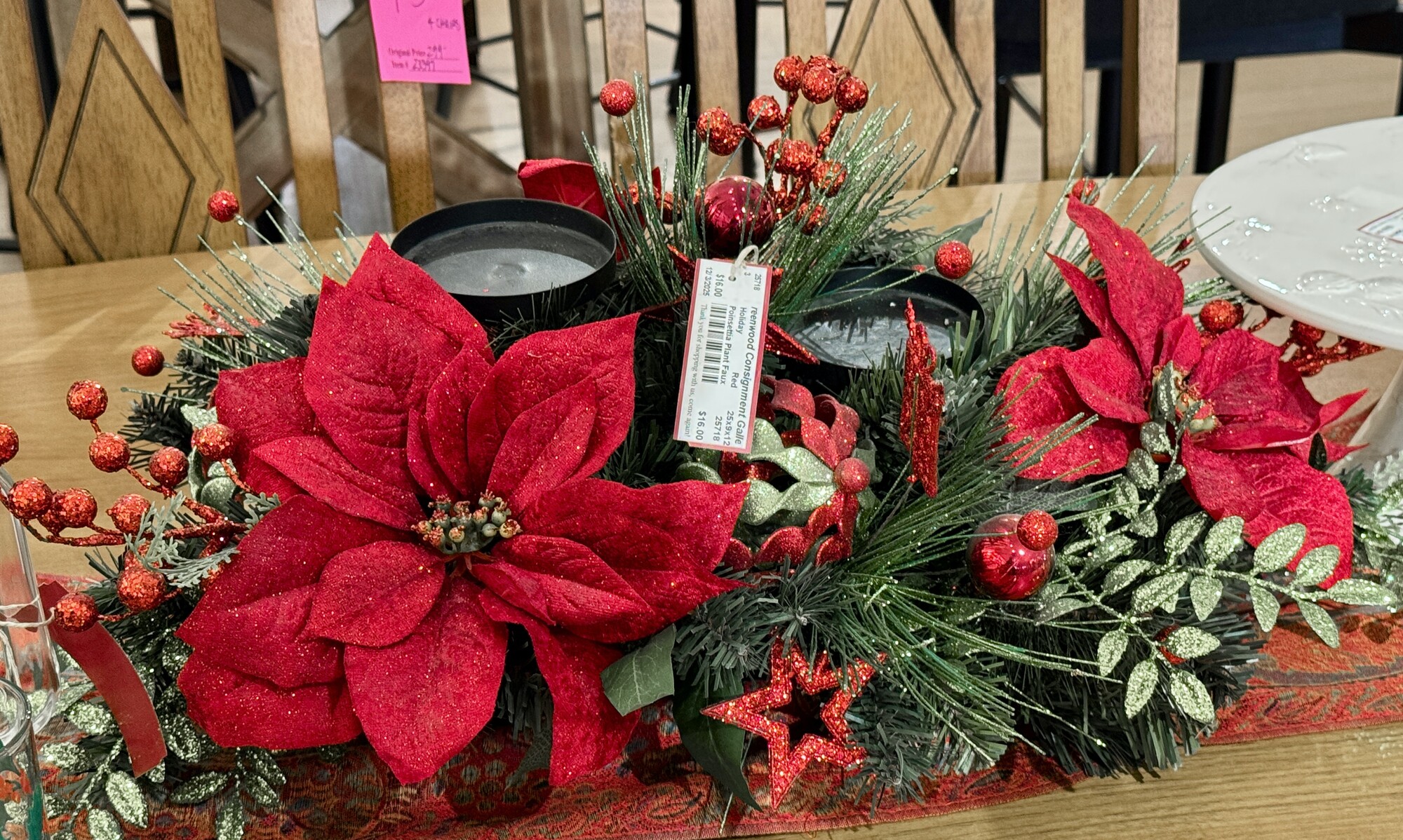 Poinsettia Faux Cemterpiece & Candle holder Size: 25x9x12