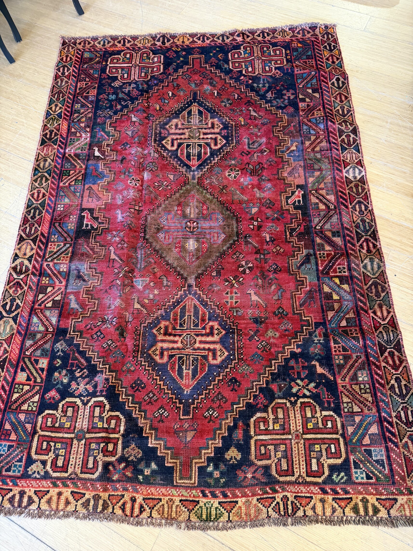 Rug Antique Persain, Handwoven Size: 269, 5x7.6, Red/Teal