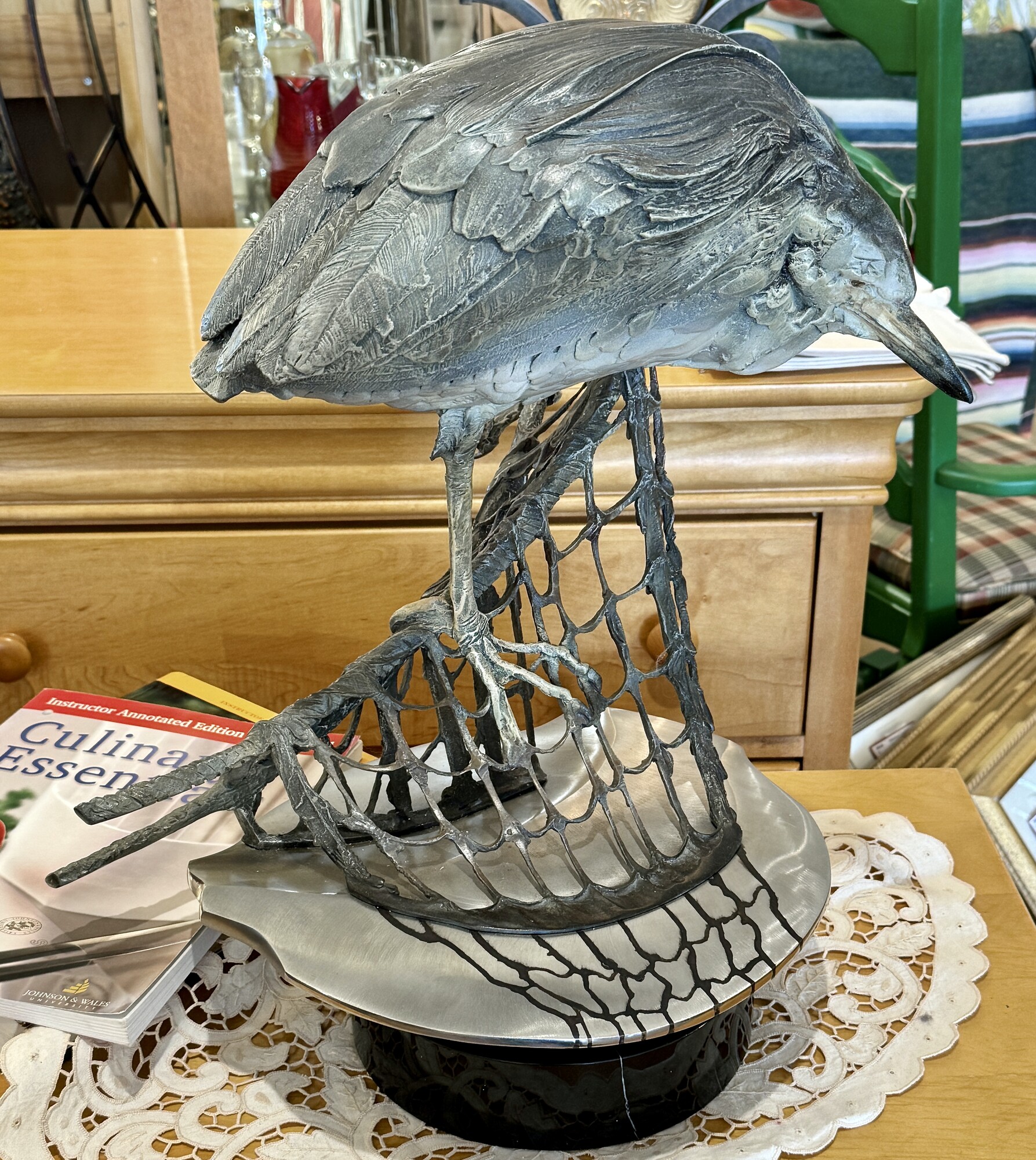 Sculpture by Vince Valdez, Heron on net, Size: 20 Tall