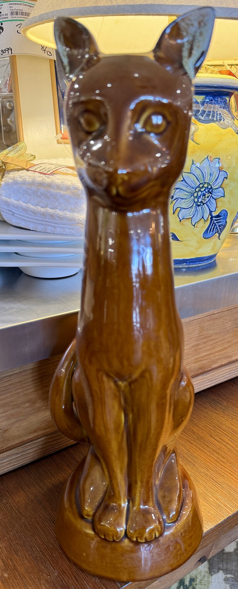 Statue Van Briggle Cat, Brown, Size: 15