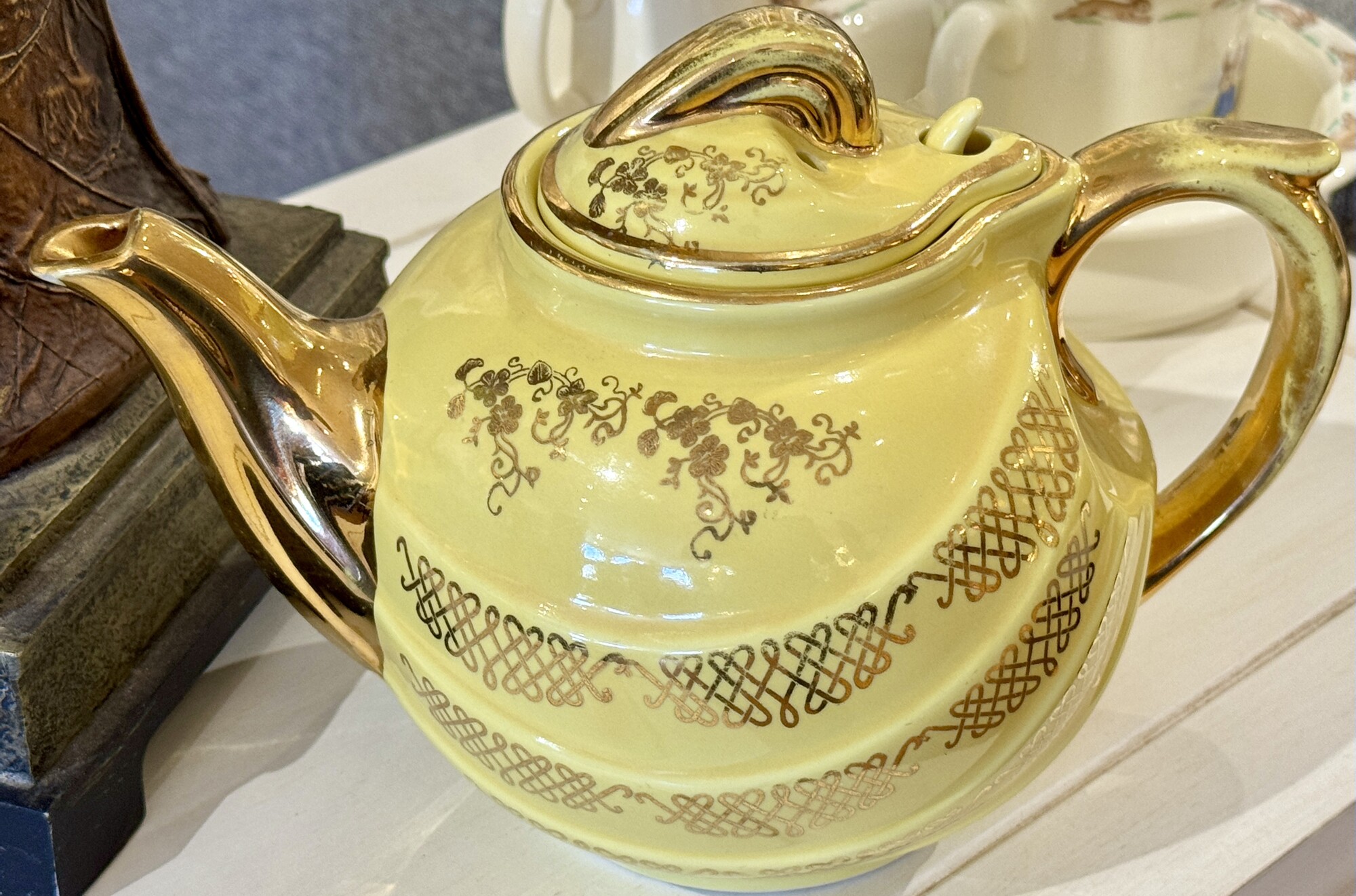 Teapot Hall Vintage, Yellow with Gilt, Size: 6 Cup