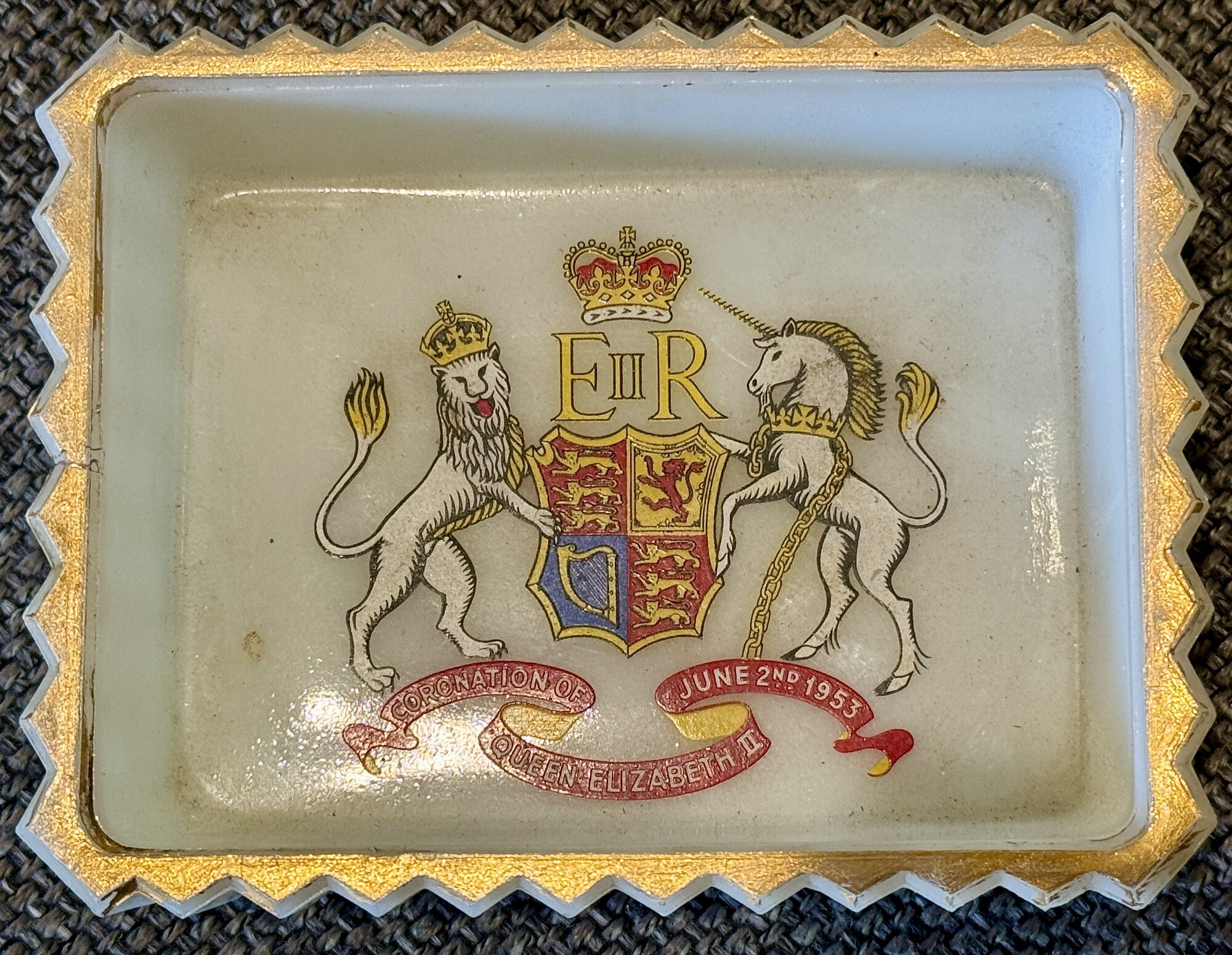 Vintage Trinket Box Coronation Queen Elizabeth II, 1953. Mlk Glas,