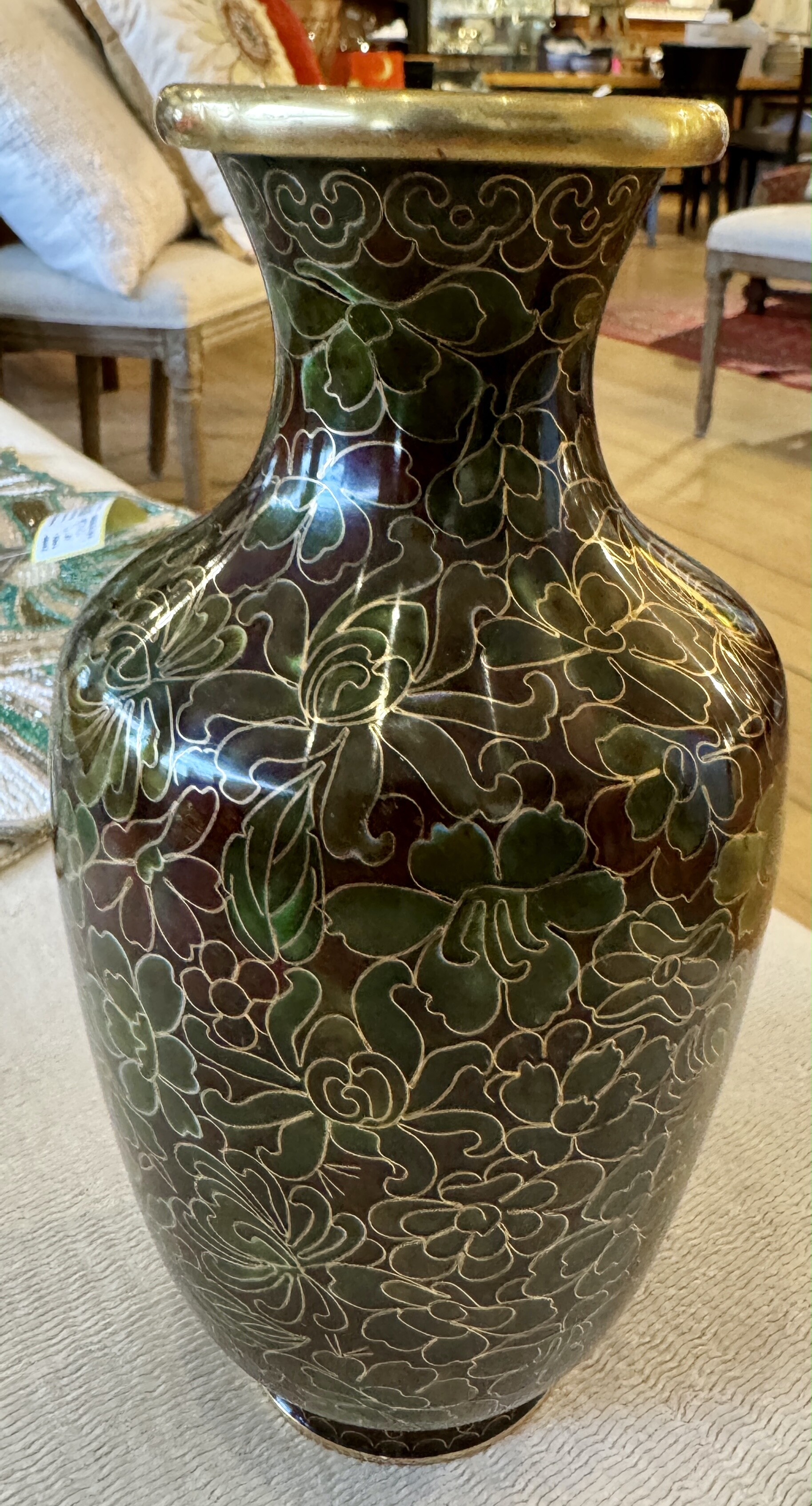 Vase Cloisonee, Brn/Grn, Size: 8 Tall