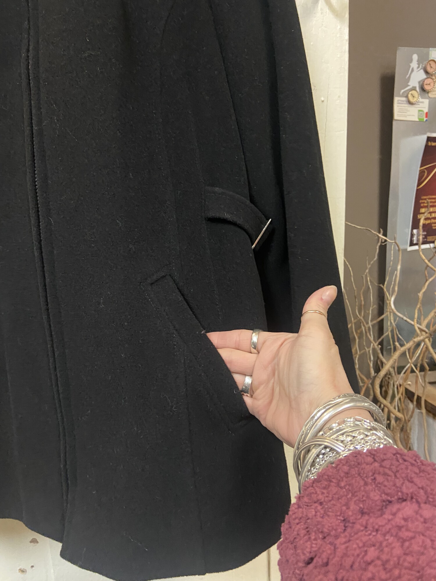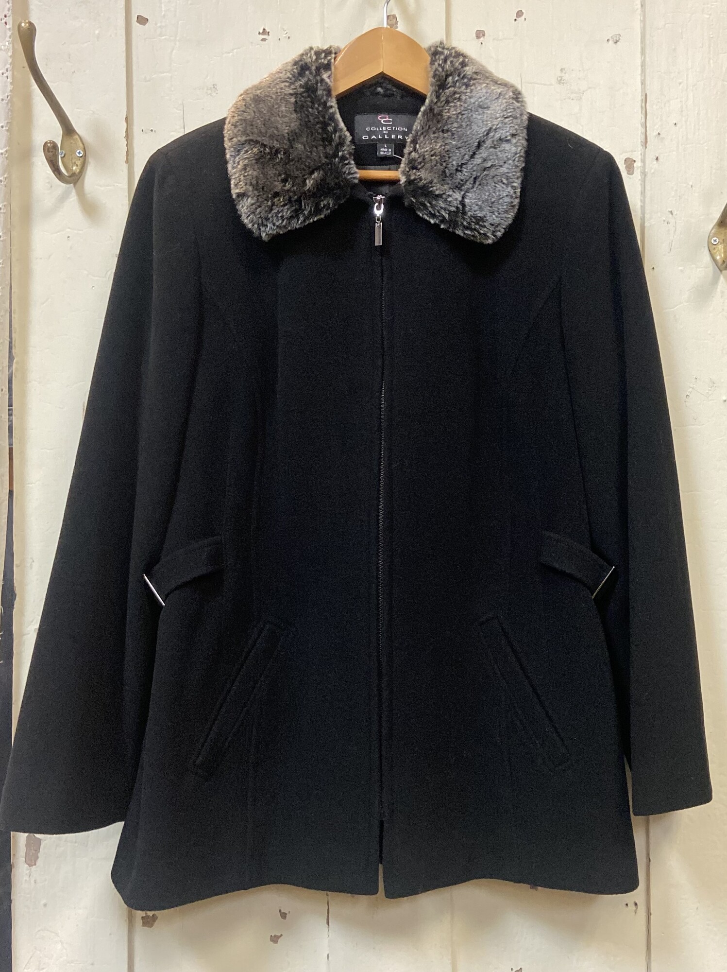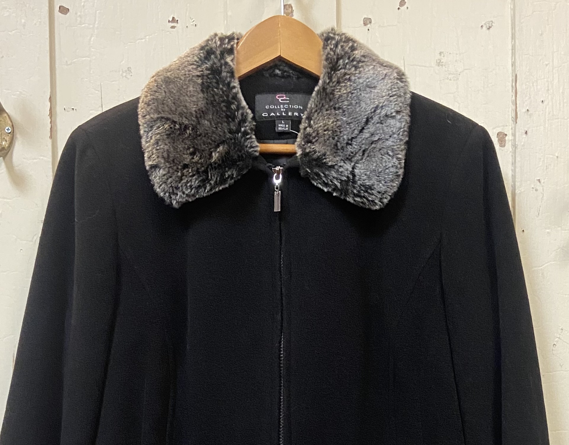 Blk Wool Faux Fur Coat Black Size: L R$115