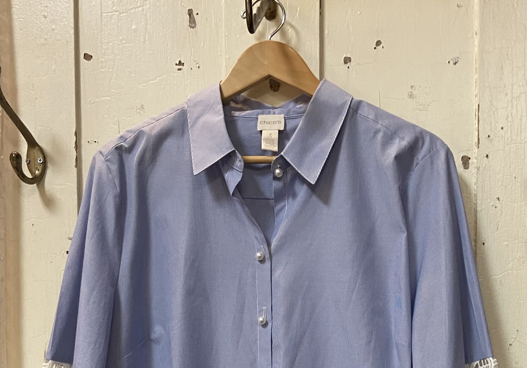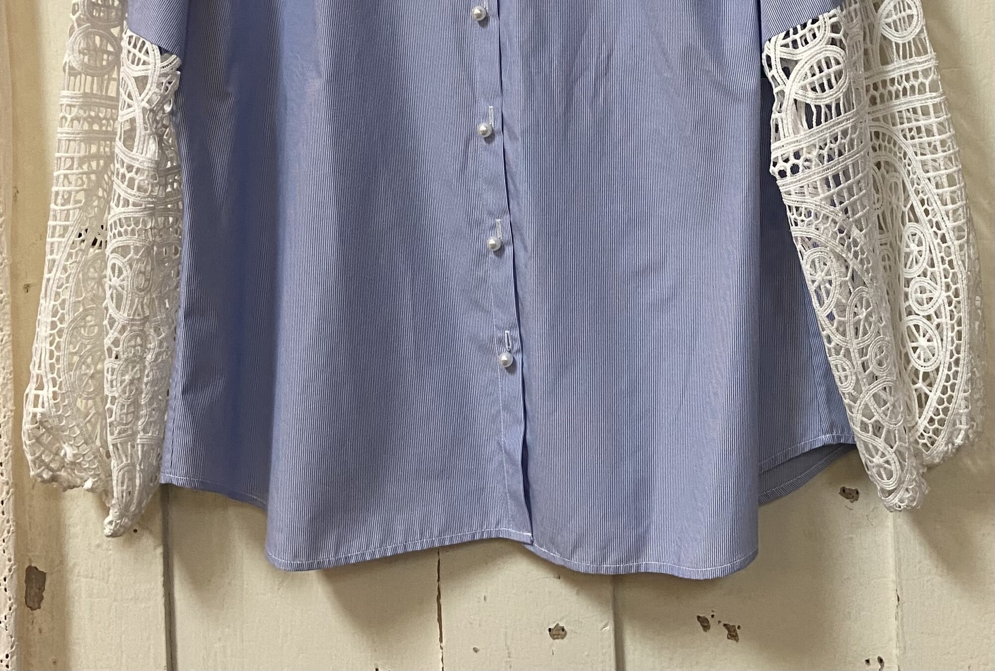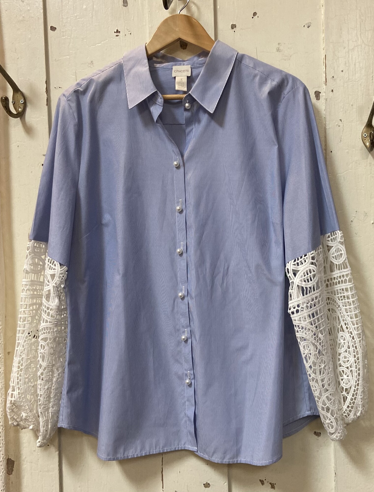 Blu Strp Eyelet Btt Shirt Blu/Crm Size: XL R $99