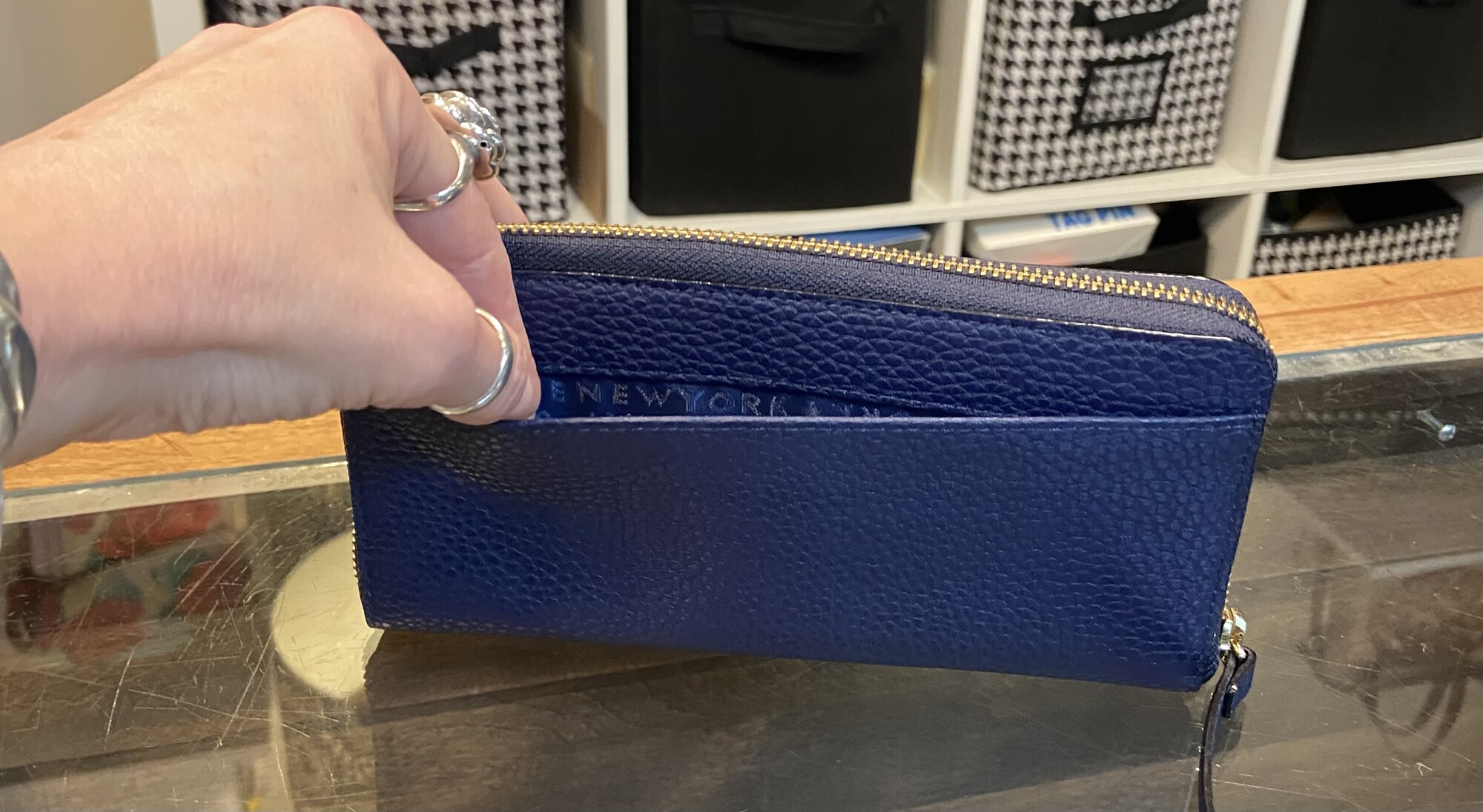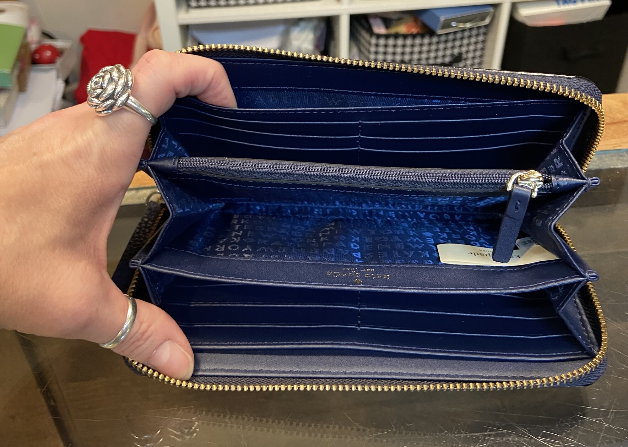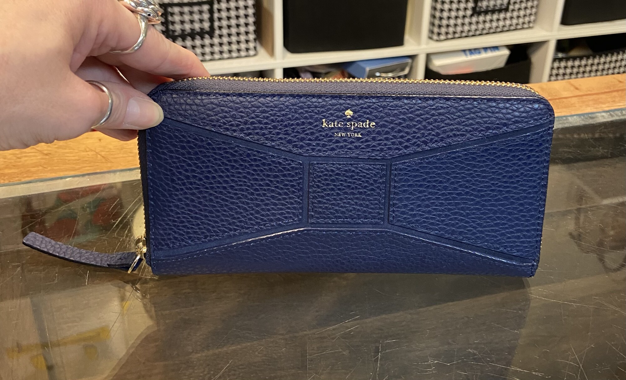 EUC Blue Pbble Bow Wallet Blue Size: Leather