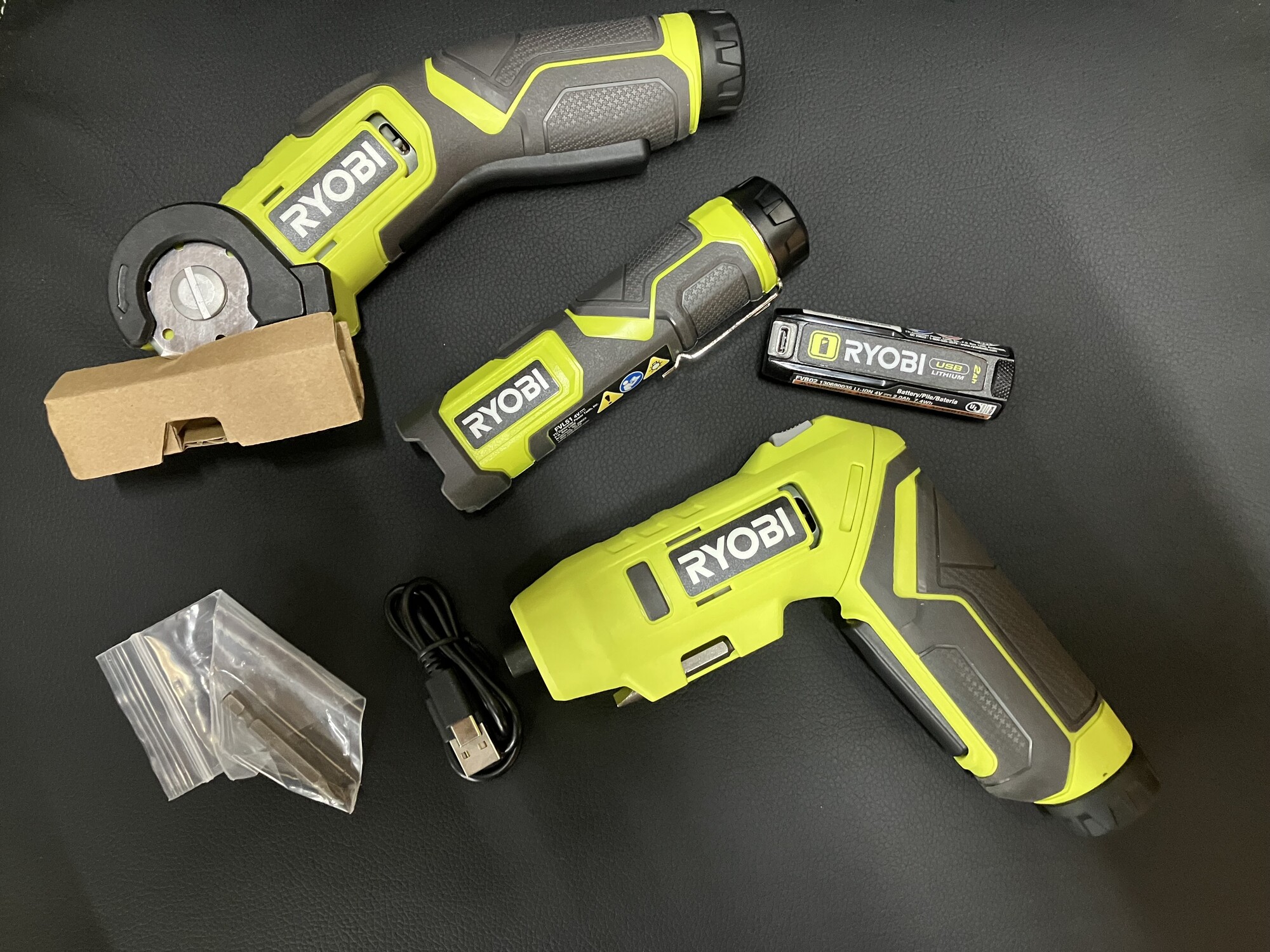 3 Tool Combo Kit, Ryobi USB Lithium 3-Tool Combo Kit with Flashlight, Screwdriver, Power Cutter,2 Ah Battery, and Charging Cord