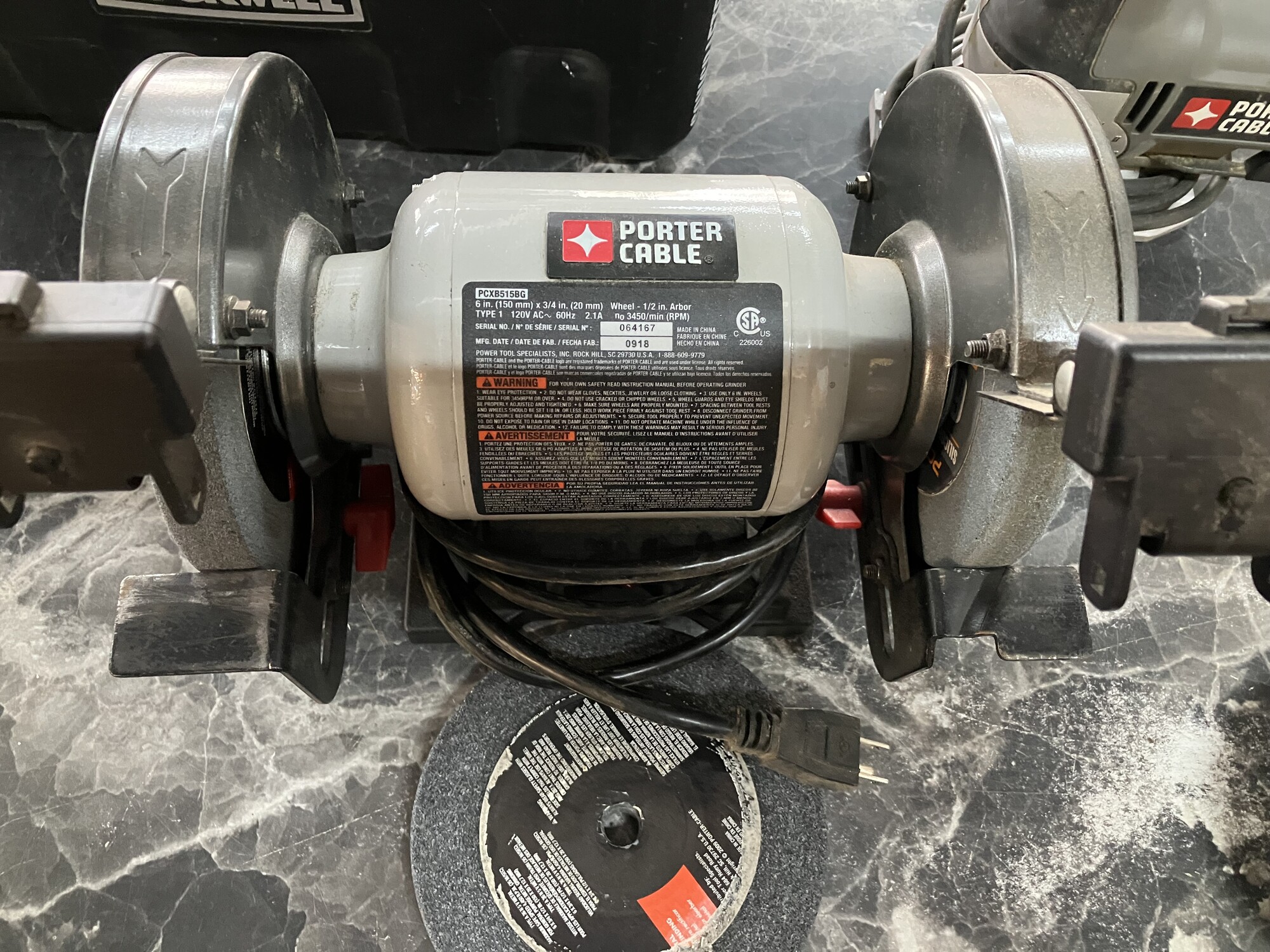 Bench Grinder, Porter Cable Size: 6in
