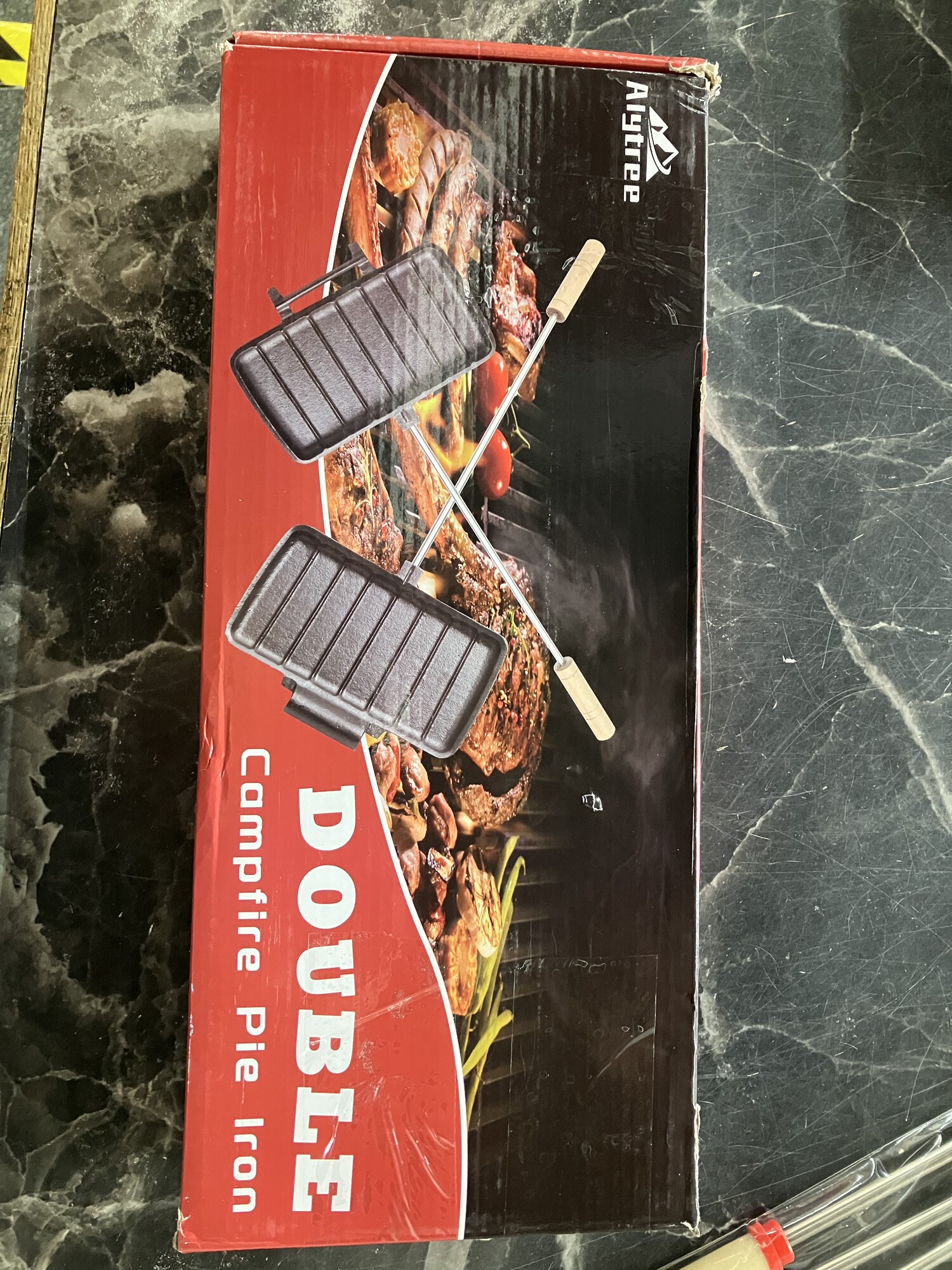 Double Pie Iron for Camping Cast Iron, Pre-seasoned Cast Iron Campfire Sandwich Maker, Mountain Pie Maker, Portable Campfire Cooking Equipment Camp Cooker