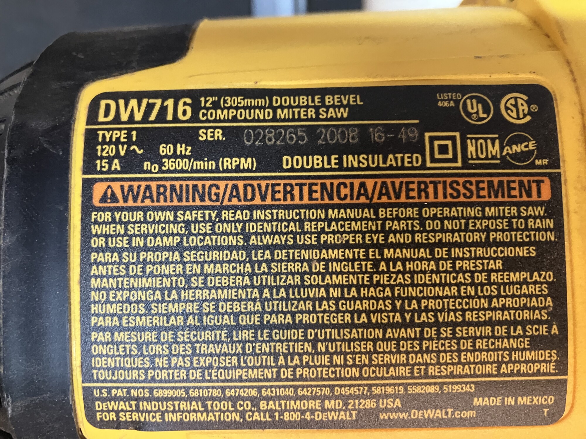 Compound Miter Saw, DeWalt, Size: 12in