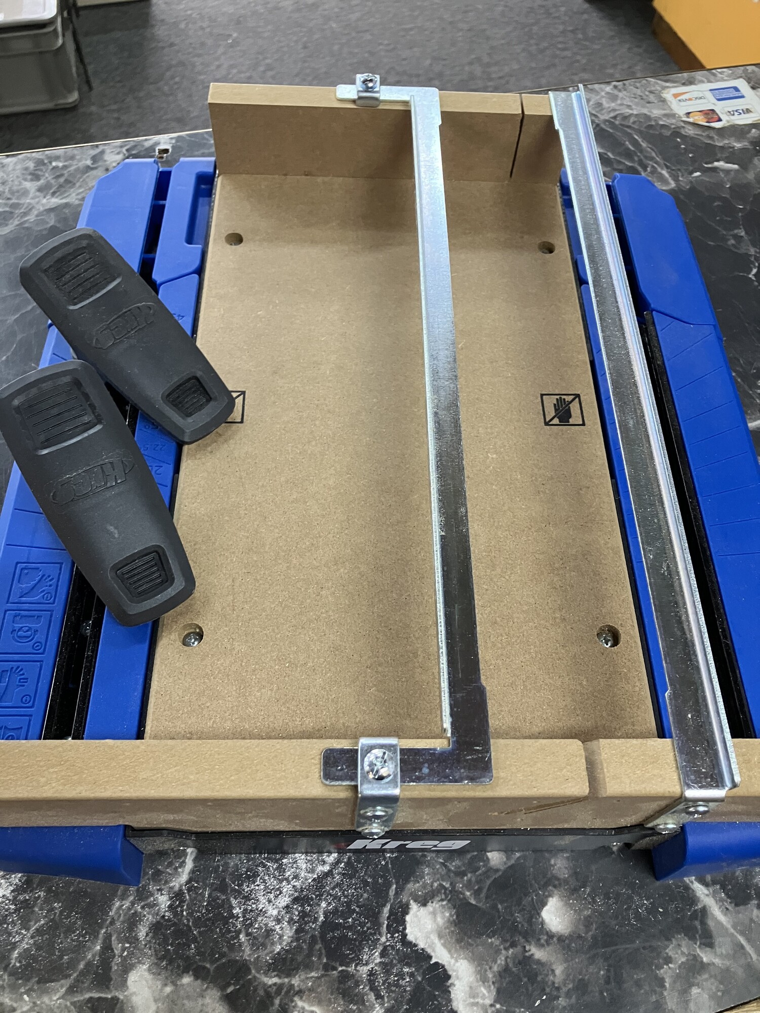 MDF base and Sure-Cut™ backboard act as sacrificial surface for splinter-free cutting