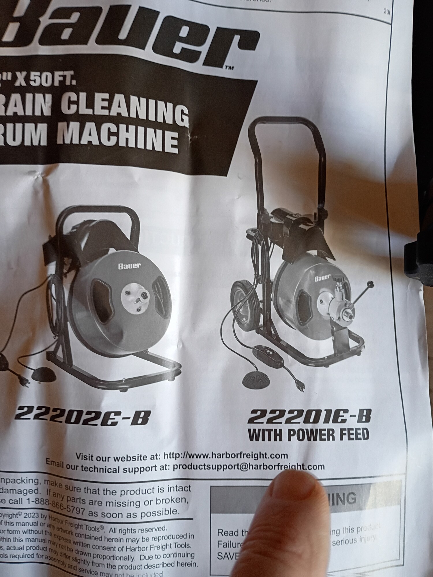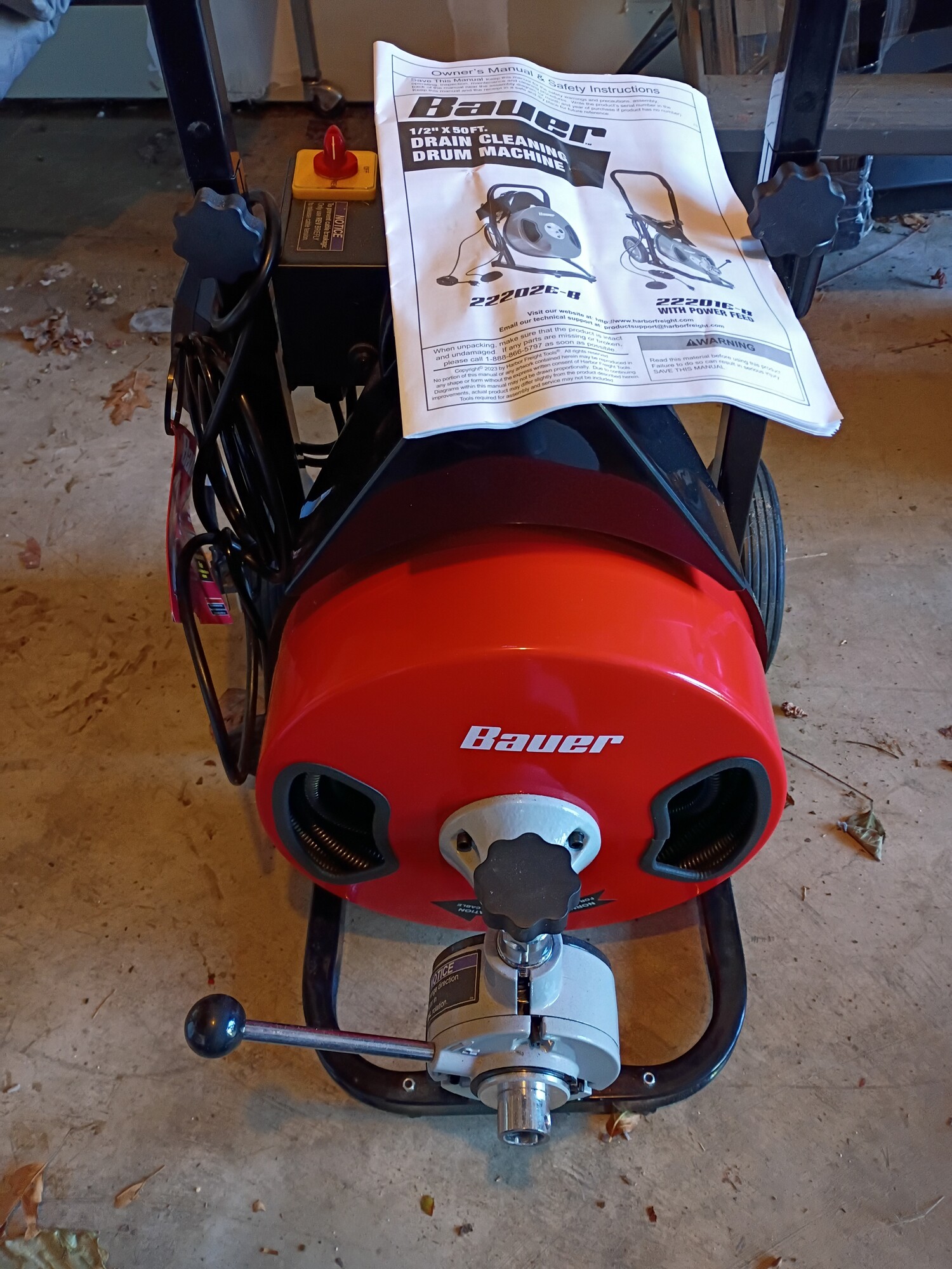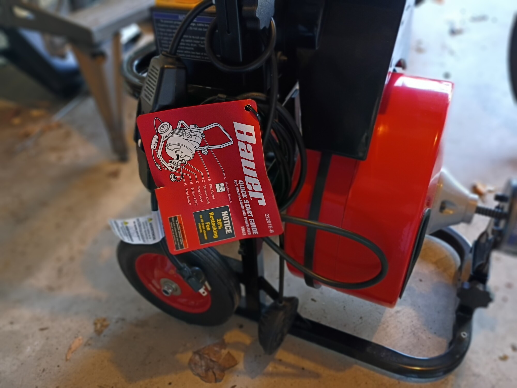 This BAUER™ Automatic-Feed Drain Cleaning Drum Machine has automatic cable feed for less mess, easier operation, and faster clearing of clogs. The kink-resistant, 50 ft. steel cable has a braided inner core for clearing 2 in. to 4 in. drain lines. This drain-cleaning drum machine is equipped with a built-in handle for transport and storage. The 8 in. flat-free tires are built for reliable portability. This drain cleaner is ideal for clearing multiple types of drains including sinks, tubs, showers, and floor drains.