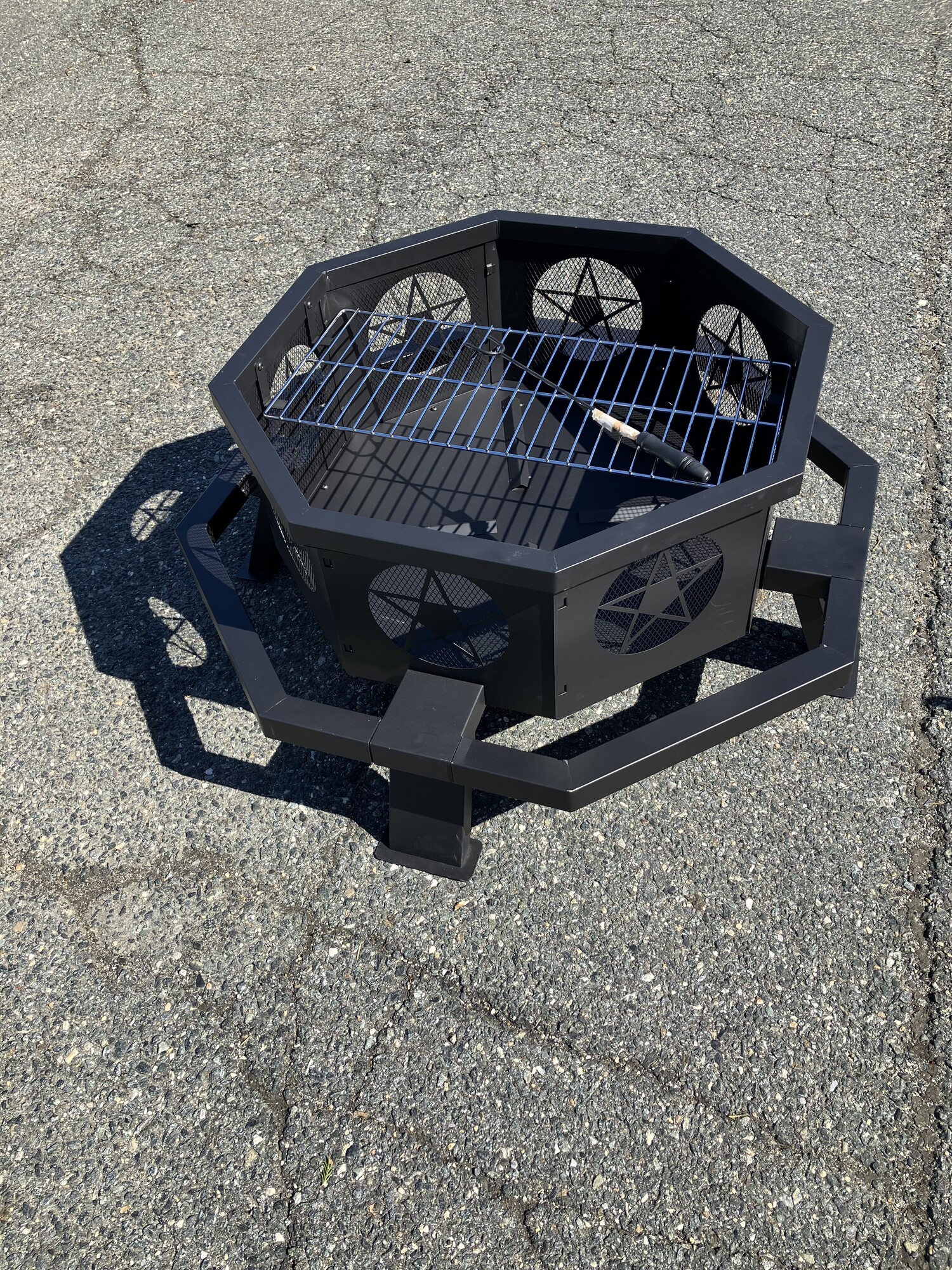 Octagonal Outdoor Fire Pit - Heavy-Duty Alloy Steel Wood Burning Firepit with Ventilated Design & Foot Pedal Safety Ring for Backyard, Patio & Camping