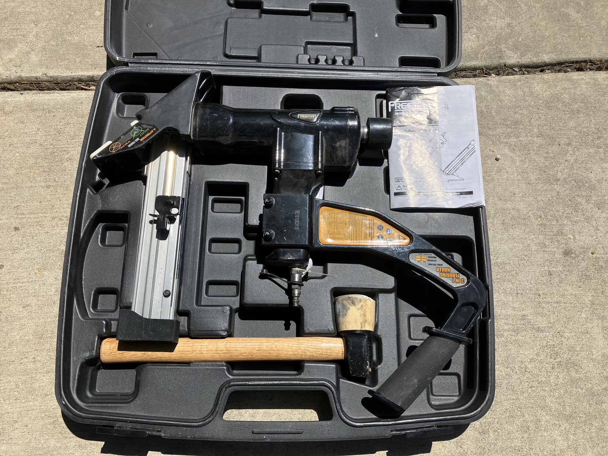 Flooring Nailer, Freeman PFL618BR Pneumatic 3-in-1 15.5-Gauge and 16-Gauge 2\" Flooring Nailer / Stapler with Flooring Mallet, Interchangeable Base Plates, and Case