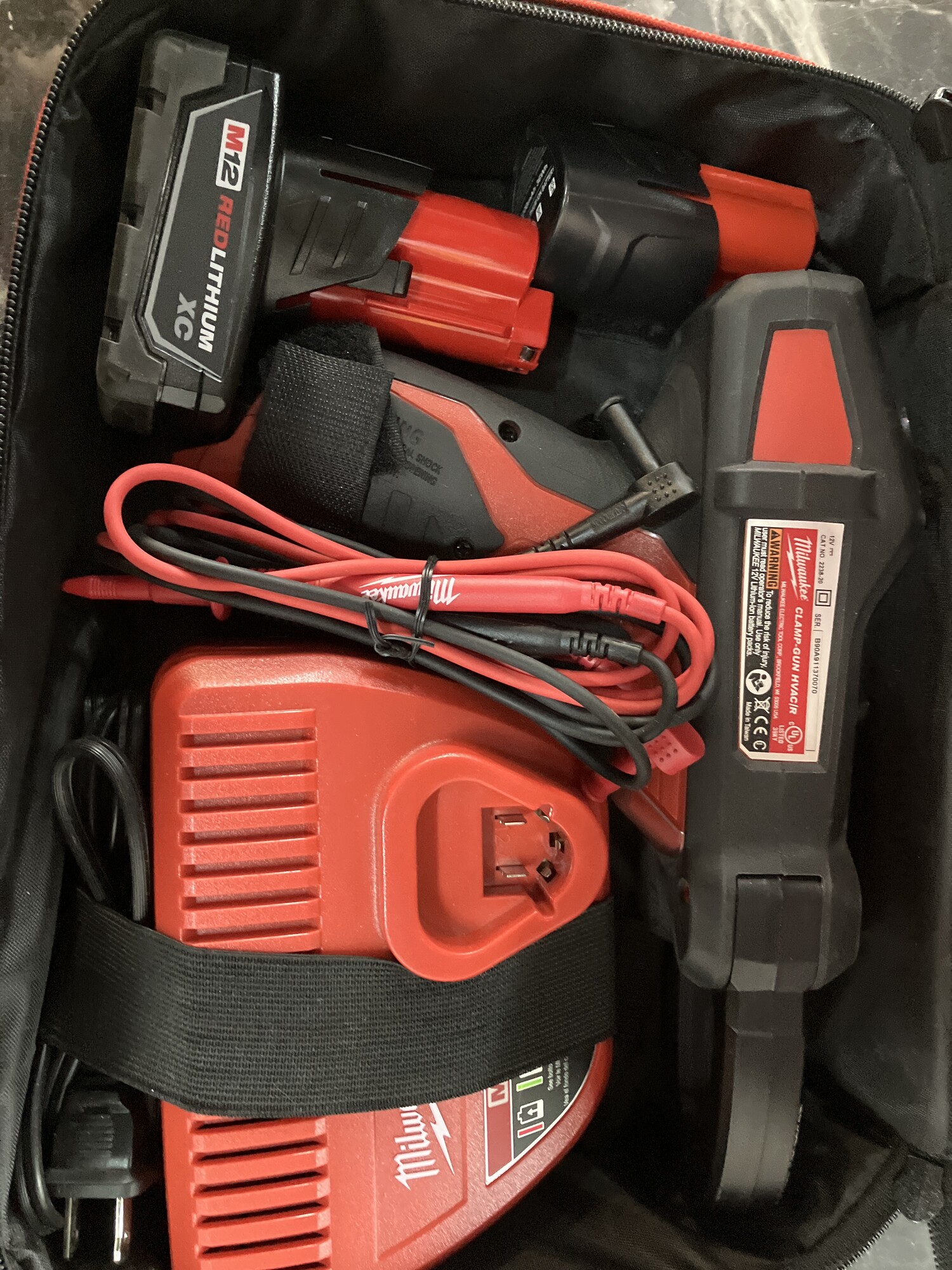 The Milwaukee CLAMP-GUN™ M12™ Cordless Clamp Meter for HVAC/R is a heavy-duty True-RMS current tester for professional commercial and industrial HVAC/R applications. Powered by the Milwaukee M12™ LITHIUM-ION battery, the 2238-21 features an ergonomic pistol grip design which greatly increases comfort and ease-of-use in overhead applications.