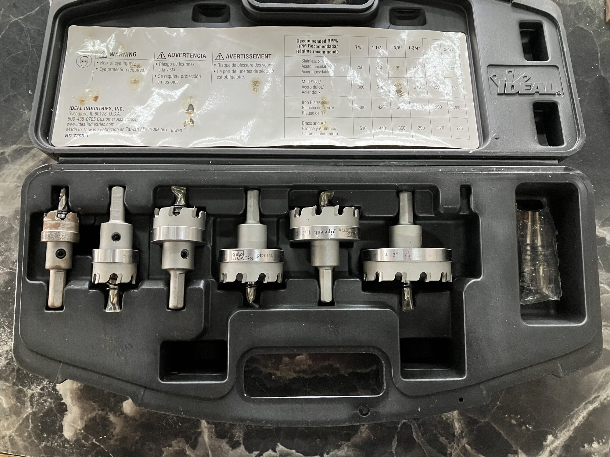 8-piece kit 7/8 in., 1 1/8 in., 1 3/8 in., 1 3/4 in., 2 in., 2 1/2 in., pilot bit, carrying case